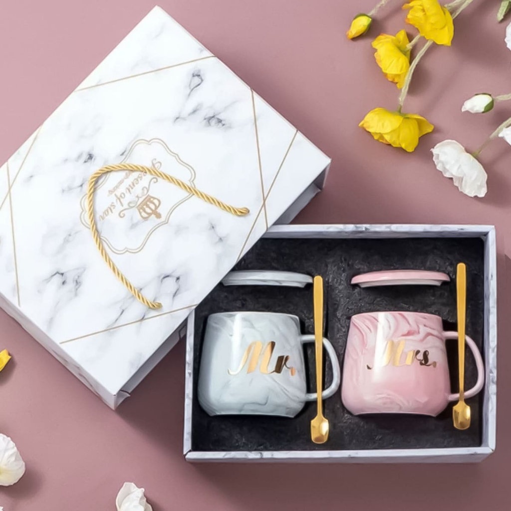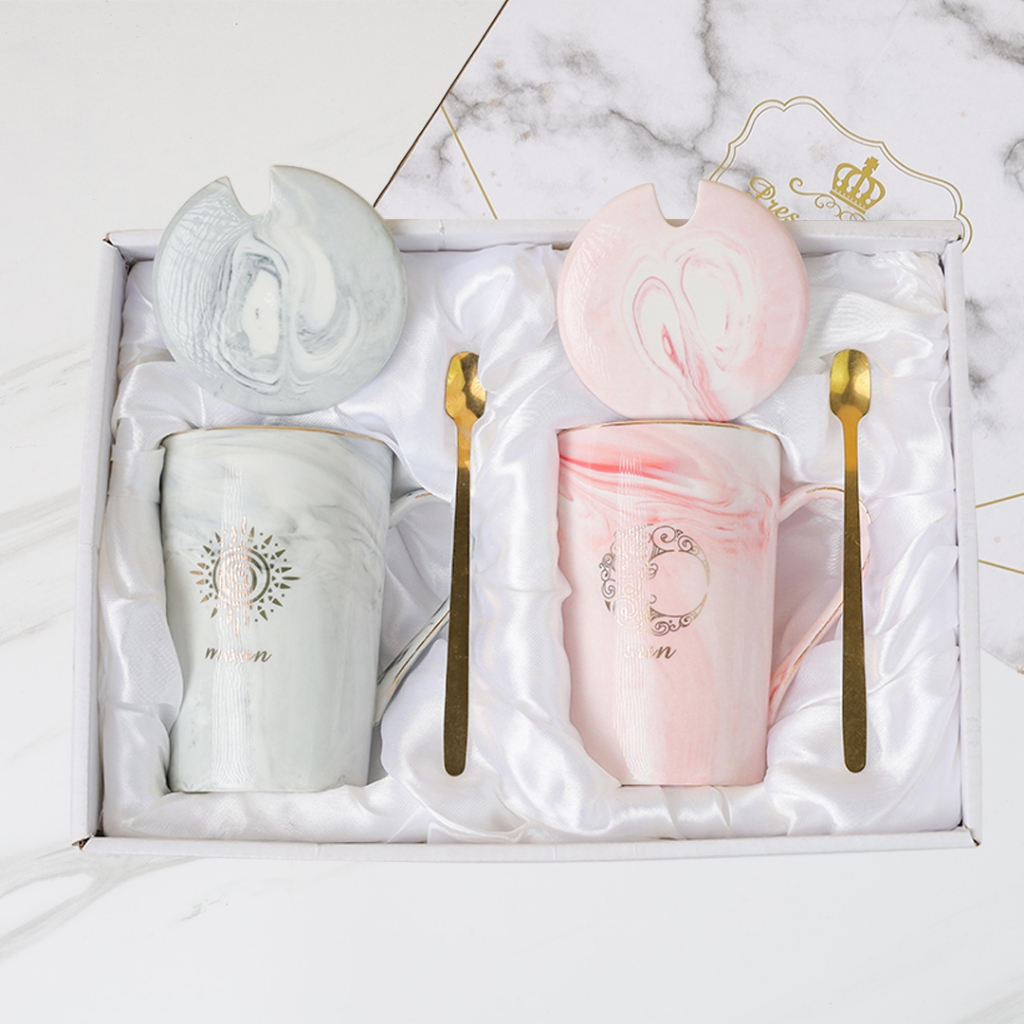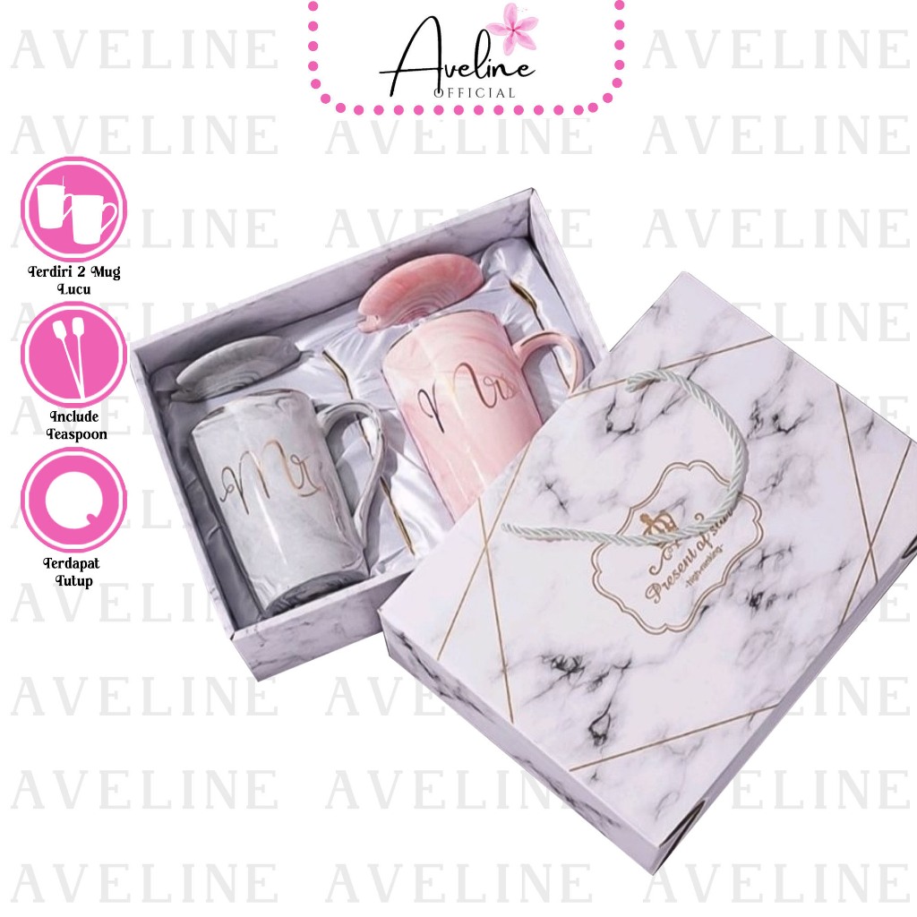 Aveline Gelas Couple Marble Mug Set / Cangkir Couple Mug Set Gift Set Marble Glass Couple Canada Gift Couple Kado Pernikahan