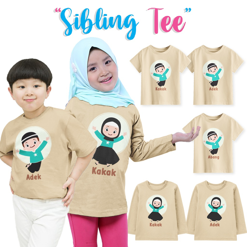 Distro nya Kaos Couple Anak 1-12 Tahun Laki Laki Perempuan Unisex Sibling Tee Series Motif Adik Kakak Muslim warna Coklat Susu