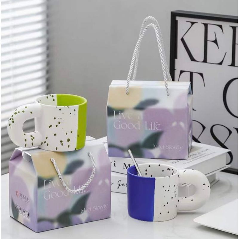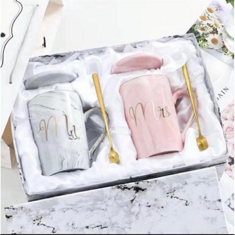 Ready Stock Gelas Couple Nordic Mug Set Gift Box/Hampers/Souvenir/ Set kotak hadiah gelas keramik couple gaya eropa utara gelas kopi mug hadiah pernikahan Mangkok Keramik