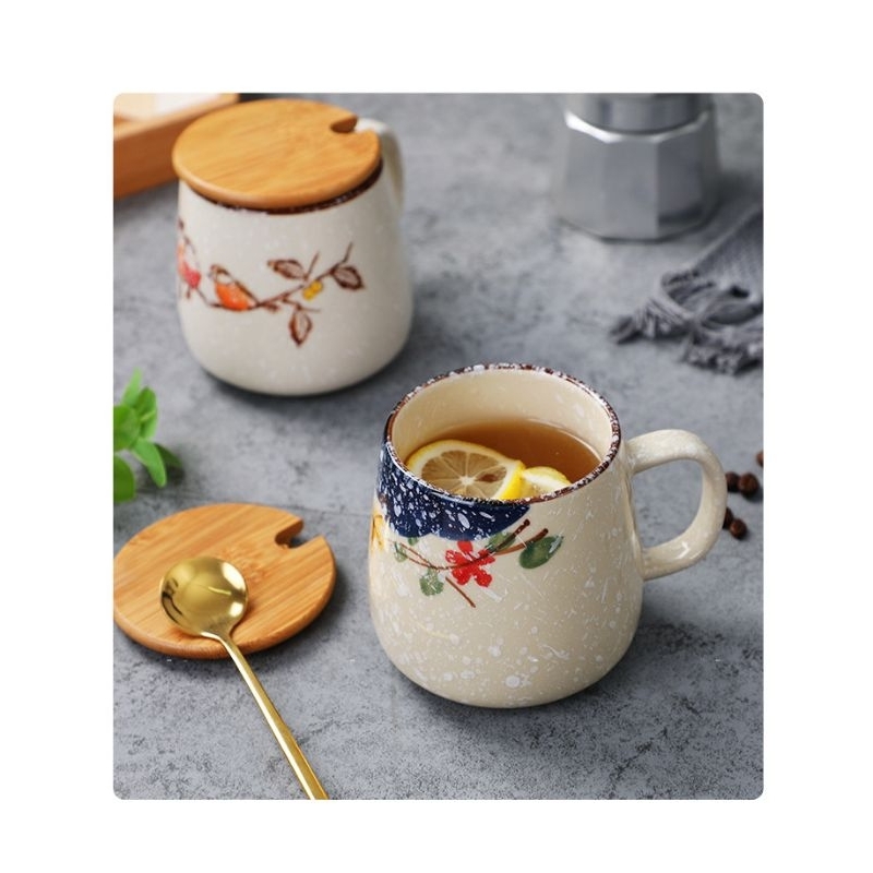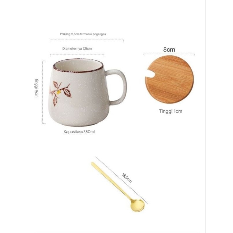 Gelas Keramik Set Sendok /Mug Handel Set/ Hampers Chinese New Year/Cangkir Kopi Teh Susu + tutup / Mug Keramik Aestethic