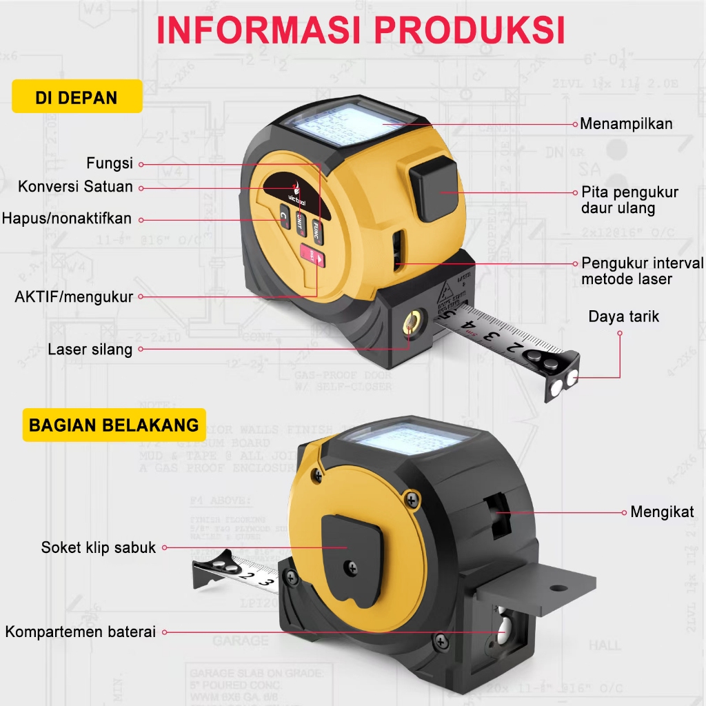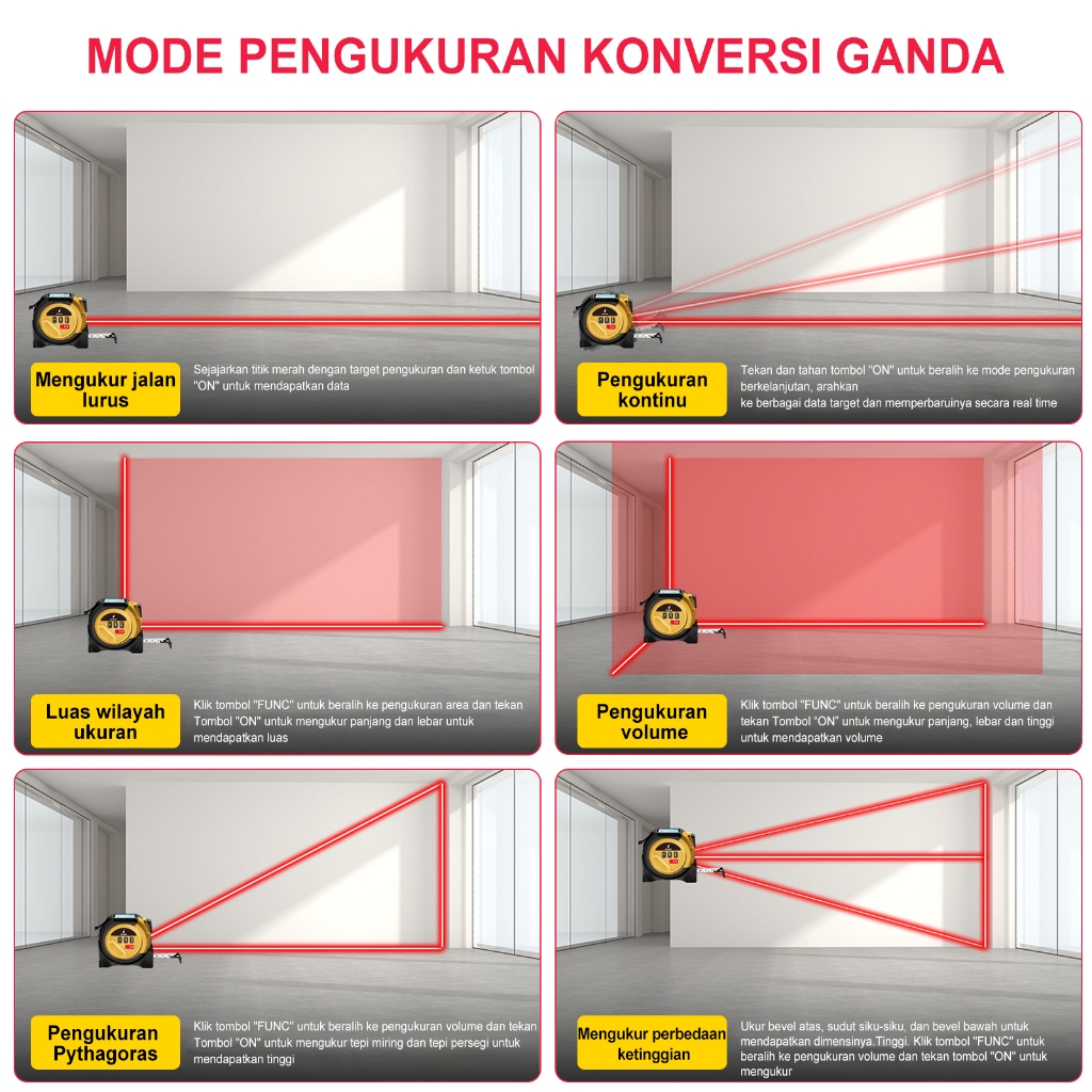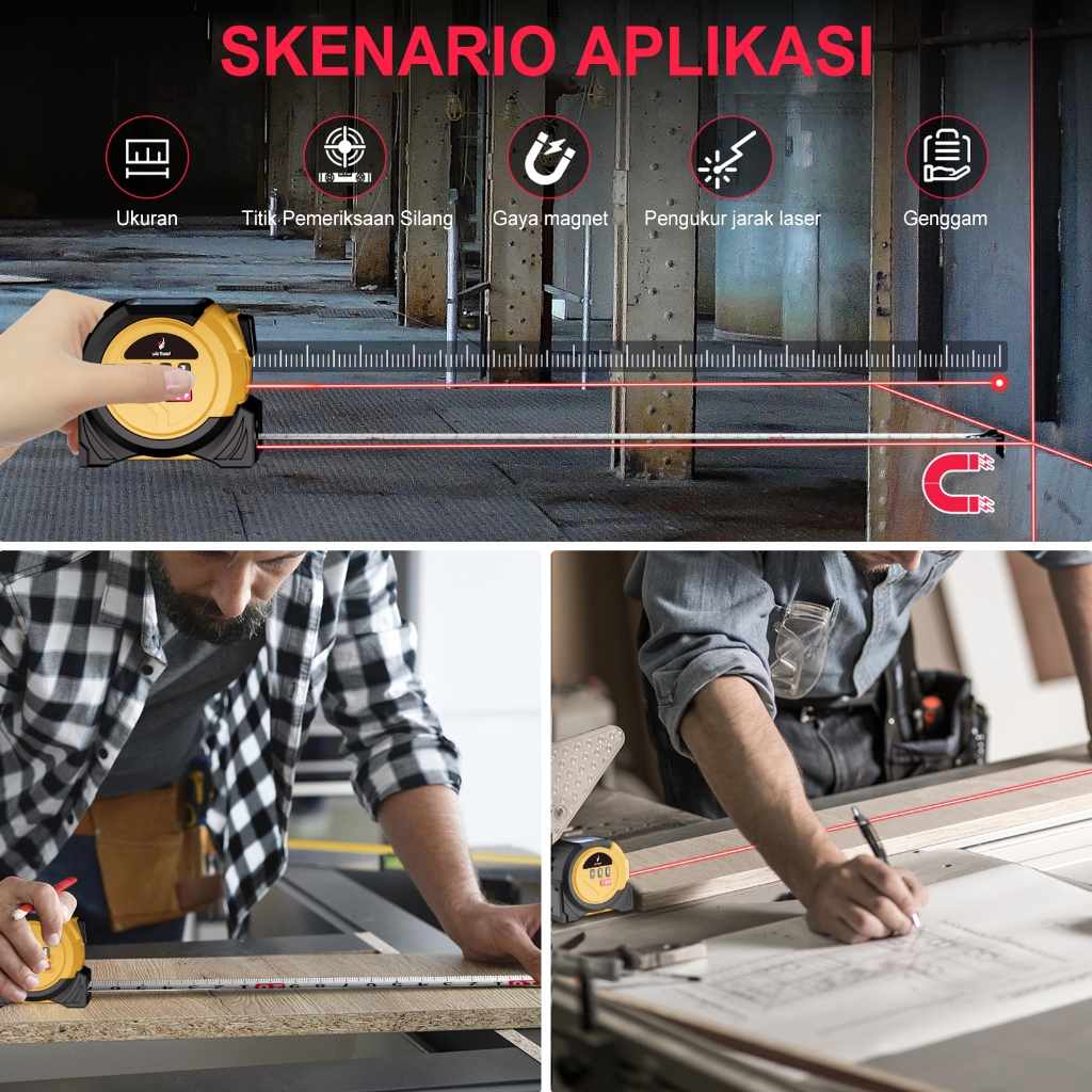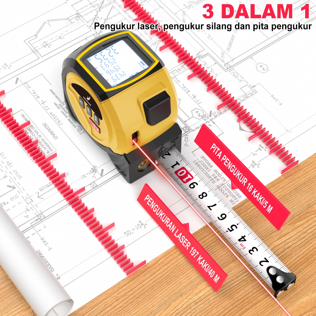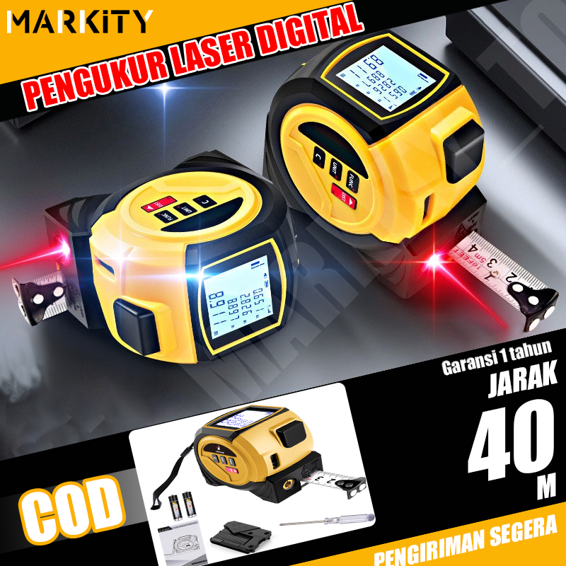 MARKITY Meteran Laser Digital 40M Meteran Laser Mini Laser Canggih dan Pita Meteran Konvesional