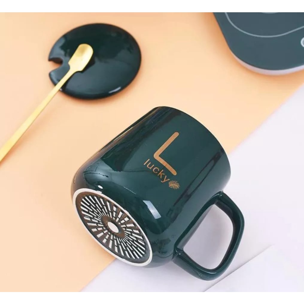 MUG GELAS CANGKIR ELEKTRIK SET KERAMIK SOUVENIR PEMANAS 55 DERAJAT PENGHANGAT KOPI 400ML DENGAN BOX-GELAS SET KERAMIK / WIBUACC