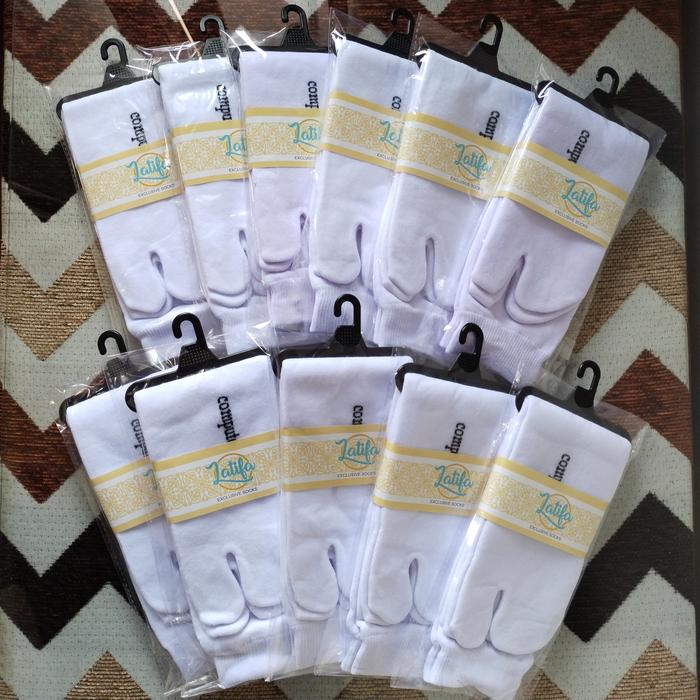 12 PASANG KAOS KAKI JEMPOL WARNA FULL POLOS PUTIH SIZE L 40CM PANJANG SEBETIS BAHAN NILON SPANDEK DEWASA MUSLIM WANITA - 12 PCS POLOS PUTIH FULL L