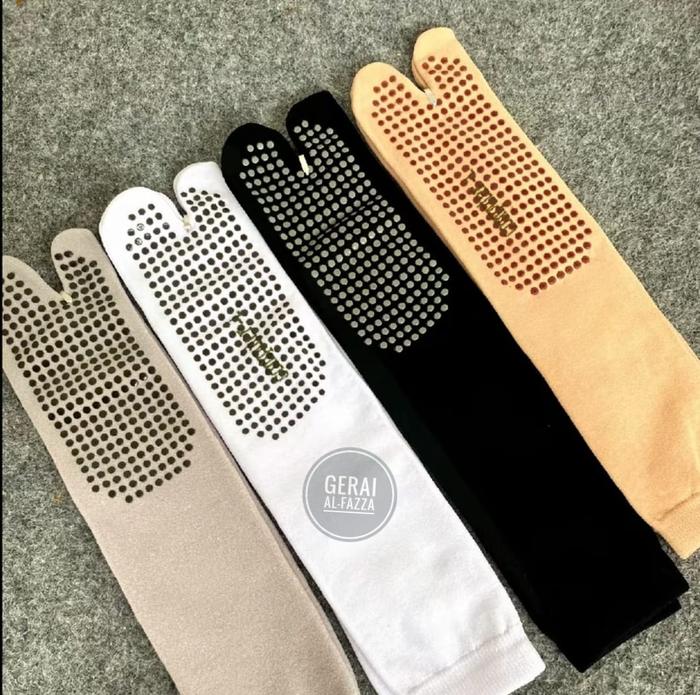 KAOS KAKI JEMPOL ANTI SLIP / KAOS KAKI NYLON ANTI SLIP WANITA TEBAL (SUDAH K) - HITAM, 6 PASANG