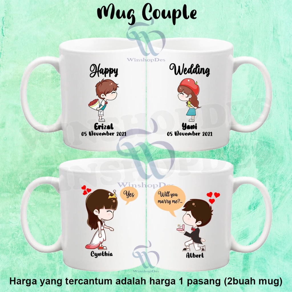 Mug Couple / Mug Happy Wedding / Kado Pernikahan / Mug Custom PALING MURAH HARGA SUDAH DAPAT 2 PCS MUG VARIASI 2