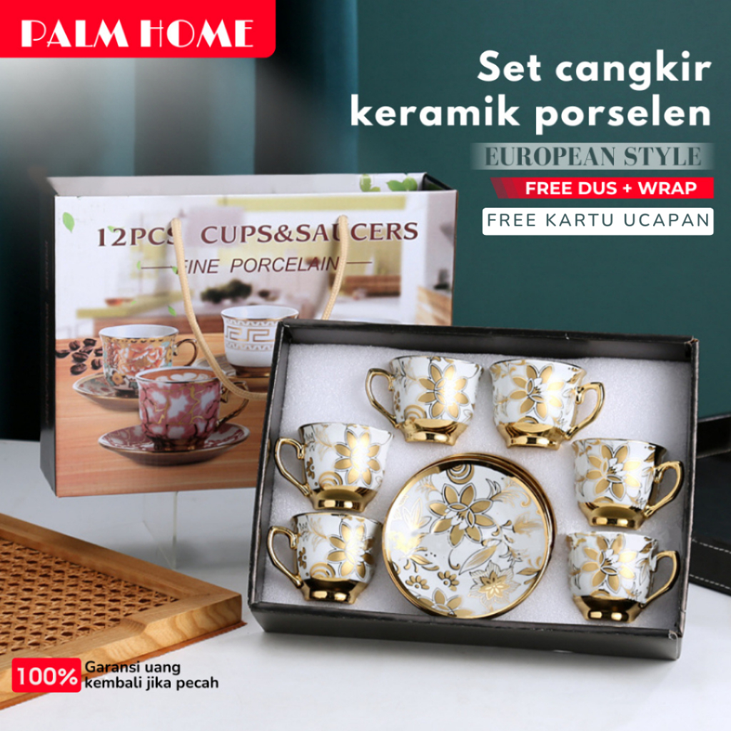Hampers kado Gelas cangkir keramik set 6 in 1 European style parcel lebaran cangkir teh