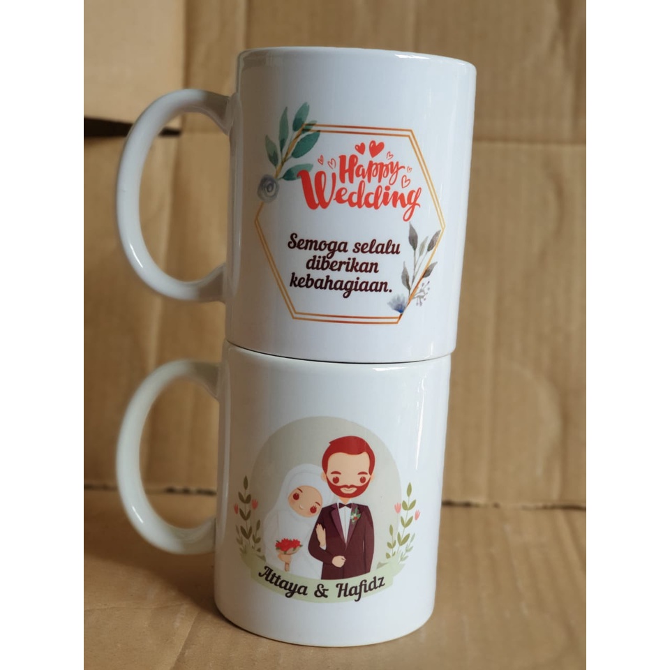 Mug Couple / Mug Happy Wedding / Kado Pernikahan / Mug Custom PALING MURAH HARGA SUDAH DAPAT 2 PCS MUG VARIASI 1