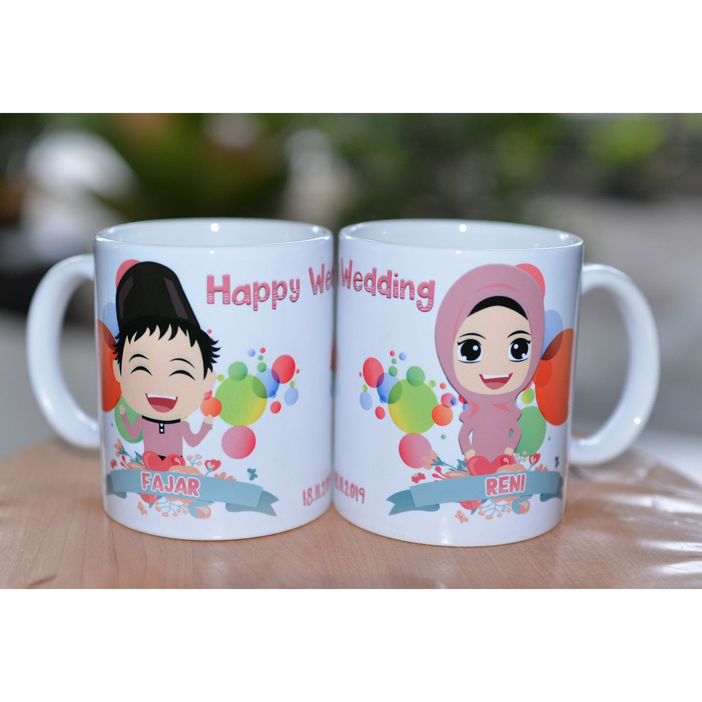 2 Buah KADO WEDDING - KADO PERNIKAHAN BONUS PACKING KARDUS BOX MUG - MUG DIGITAL PRINTING CUSTOM
