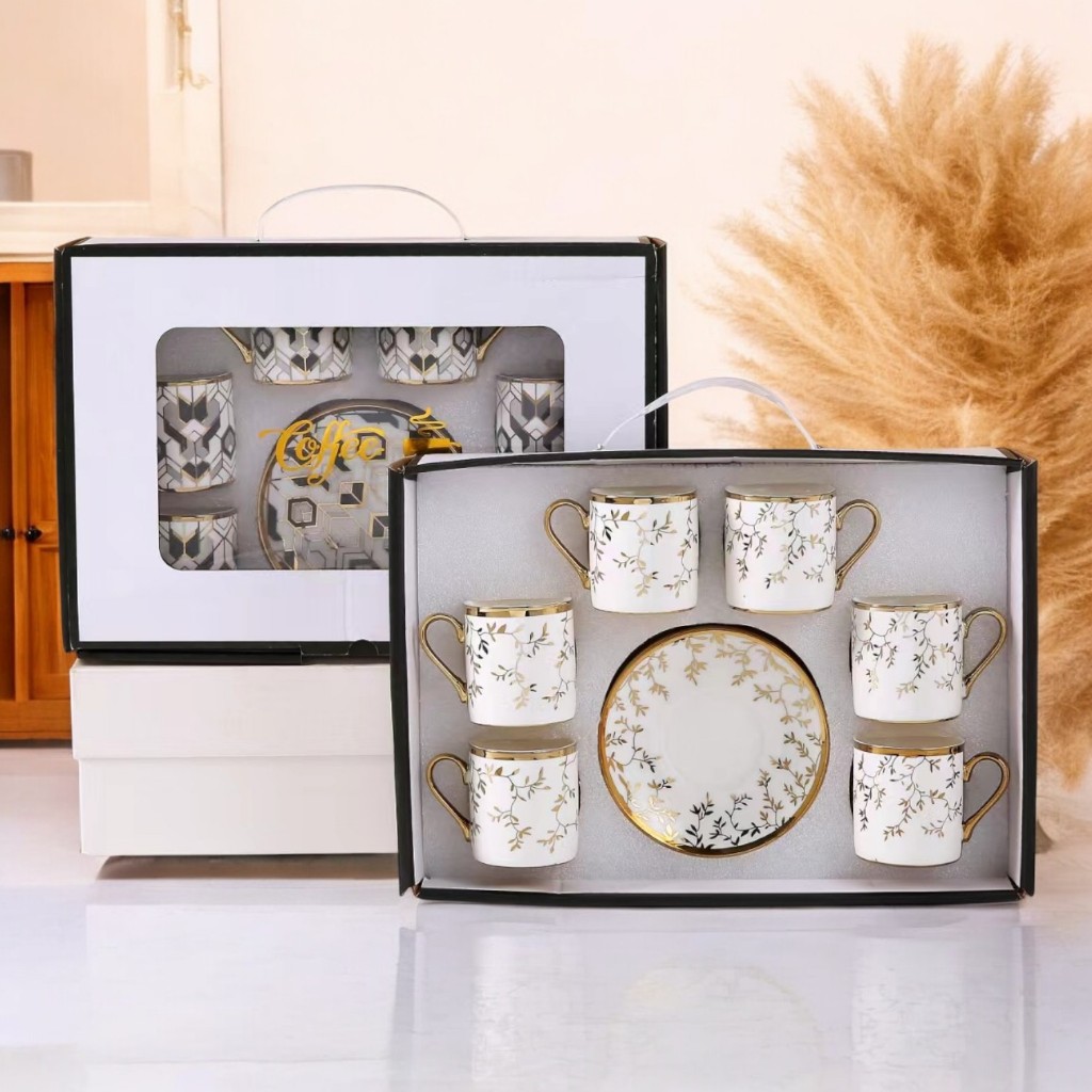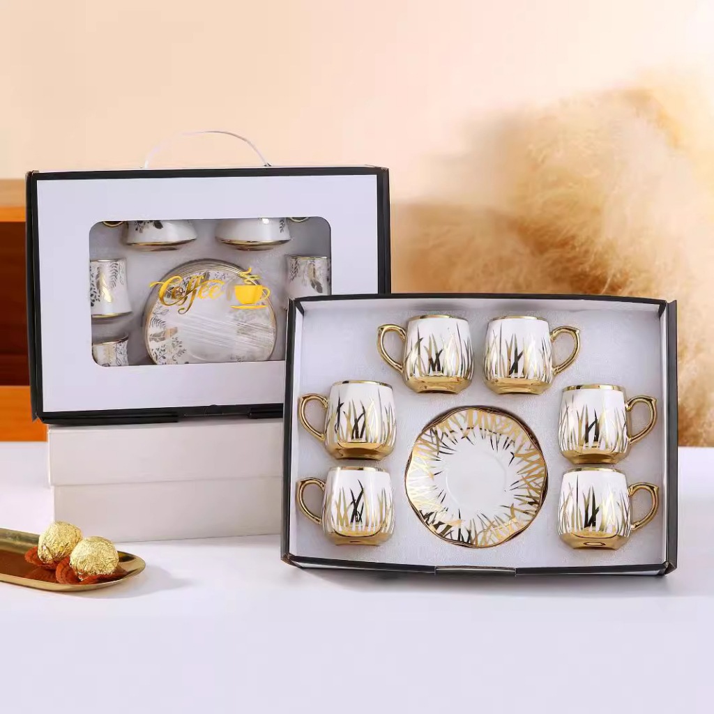Cangkir Keramik Mewah g0lldss Set 6 in 1 12Pcs Mini 90ml Kecil European Style Hampers Ramadhan Lebaran Idul Fitri