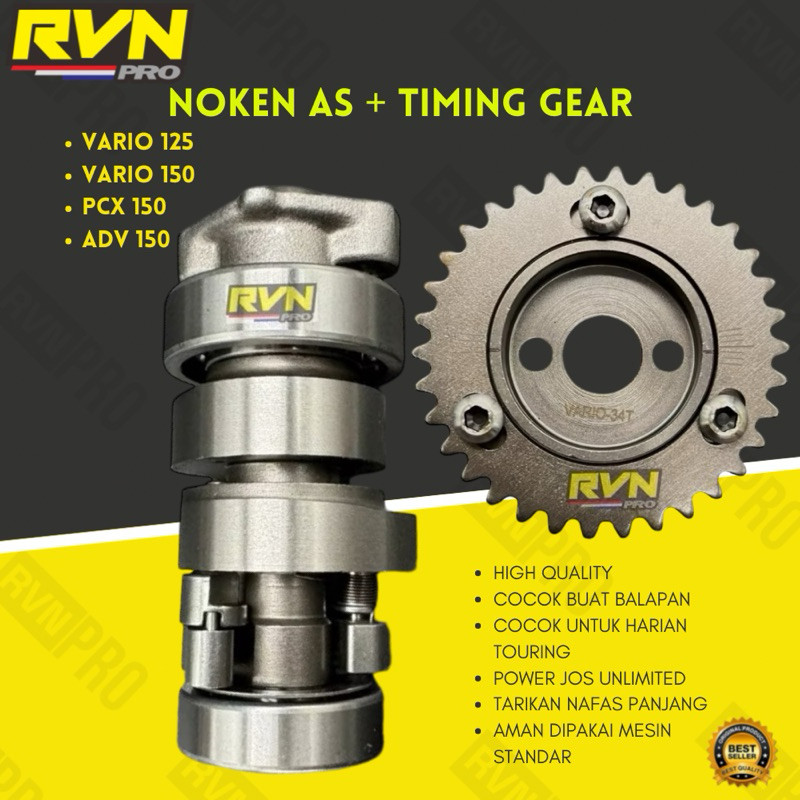 RVN PAKET 3IN1 NOKEN AS GIGI SENTRIK PERKLEP VARIO 150 125 PCX 150 ADV 150 LIFT 5.8MM SET CAMSHAFT TIMING GIR GEAR GESER