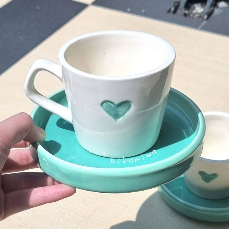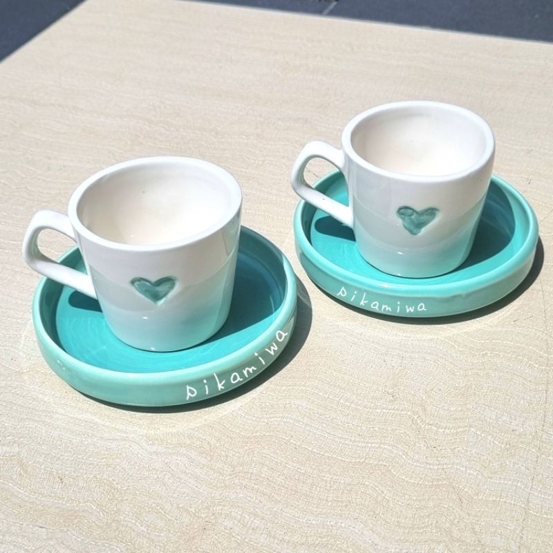 2 SET JOY COUPLE MUG AND SAUCER KERAMIK WHITELINE mug lucu hadiah lucu hadiah murah gelas cantik
