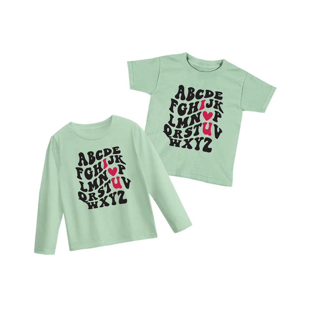 Baju Kaos Anak Distro Unisex Couple Adik Kaka Kembar Panjang Pendek Karakter Alfabet Abjad ABCDEFGHI Kaos Anak S M L XL XXL Star Goo