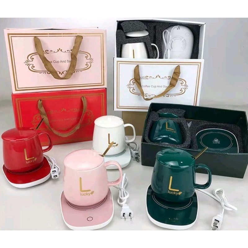 HAMPERS KADO WEDDING SPESIAL GELAS SET PEMANAS SUHU 55 DERAJAT CANGKIR SET KERAMIK DENGAN PEMANAS SET MUG ELEKTRIK KOPI COFFEE TEH