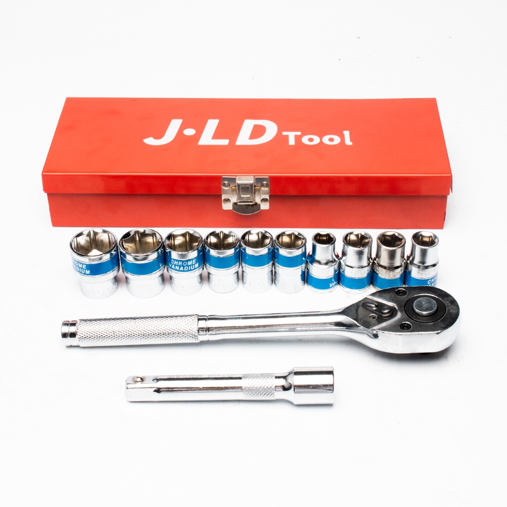 JLD 12pcs Kunci 1 set shock CR-V socket set 1/2inch Kunci Shock Socket Wrench Set 11-24mm Dan 10Inch Extension Bar Bahan