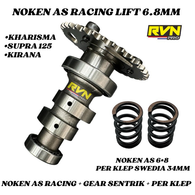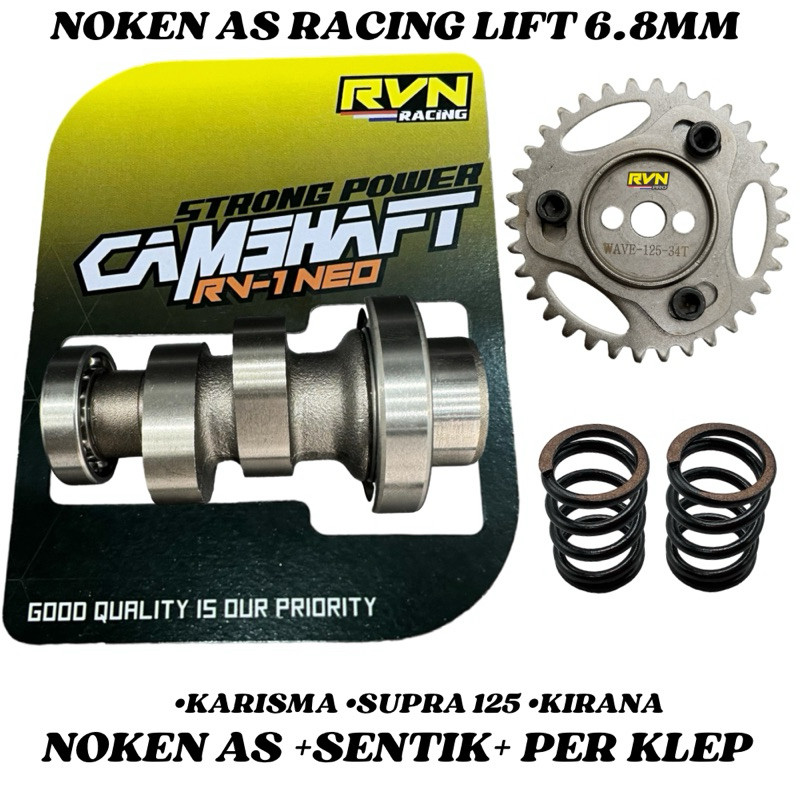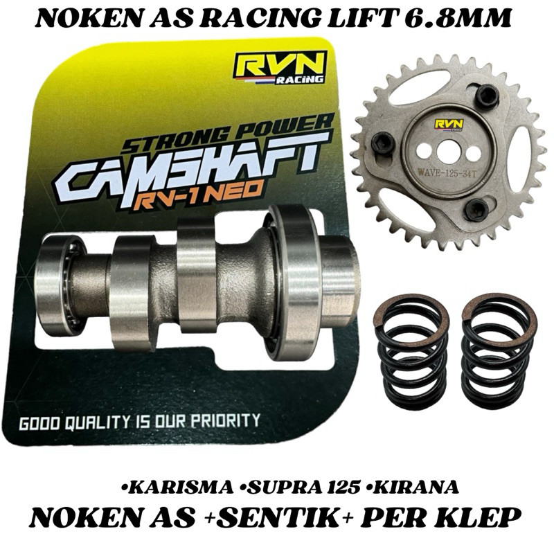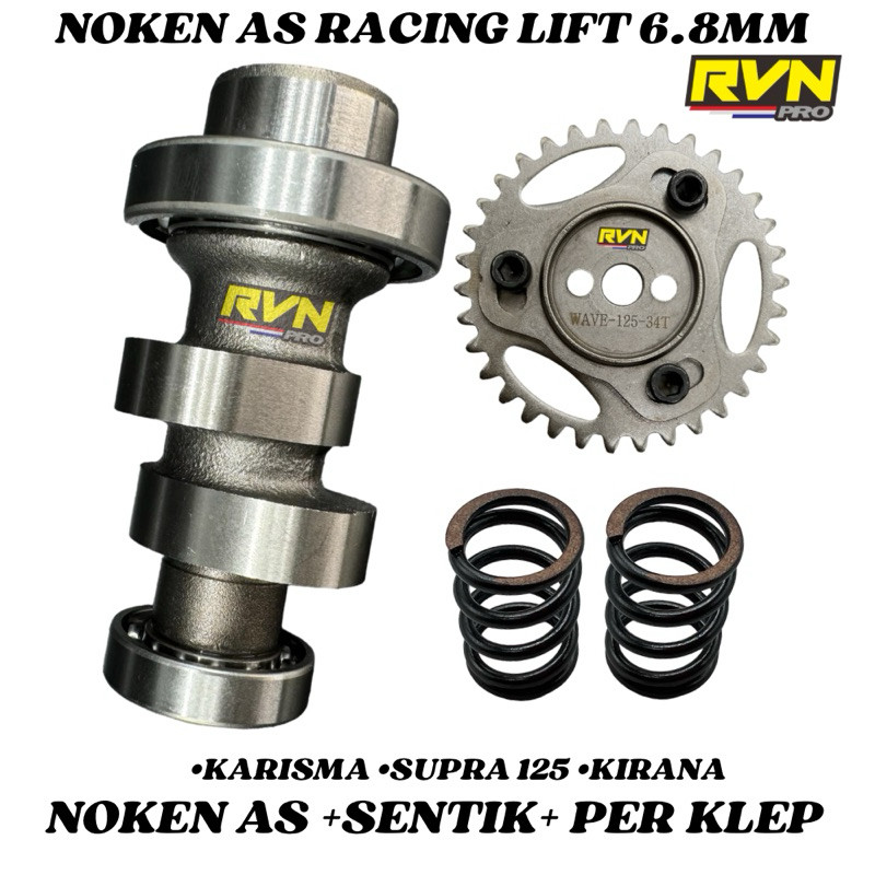 RVN PAKET 3IN1 NOKEN AS GIGI SENTRIK PERKLEP KPH KARISMA KHARISMA SUPRA X 125 KIRANA LIFT 6.8MM SET CAMSHAFT TIMING GIR