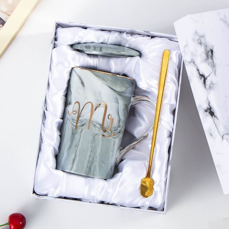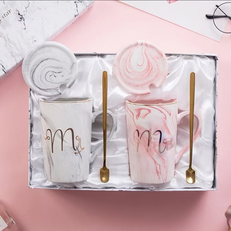 LIVIA Cangkir Gelas Couple Mr Mrs / Mug Marbel Marmer + Box Wedding Gift Set Kado