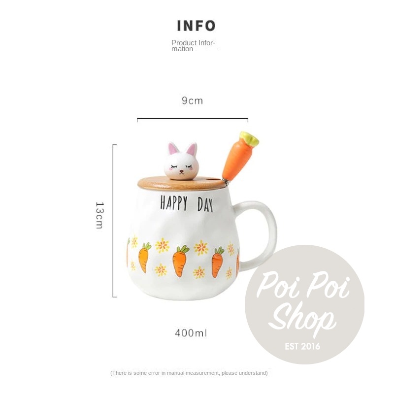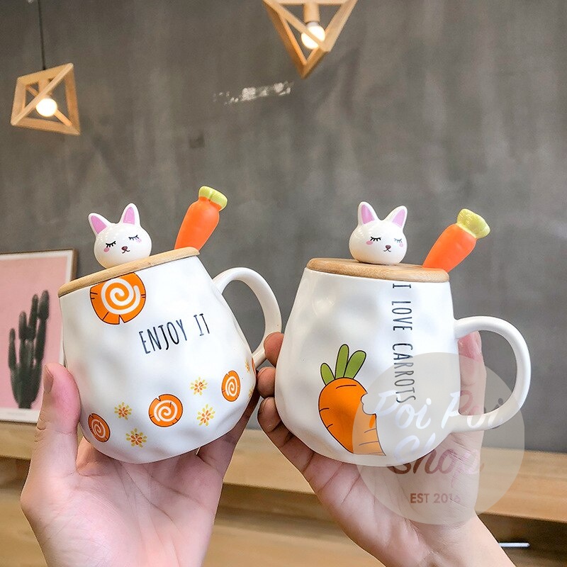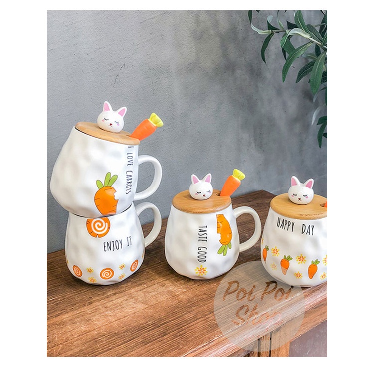 Cangkir Keramik Bunny Carrot Cup Gift Set Ceramic Mug 450 ml Gelas dengan sendok dan tutup High Quality