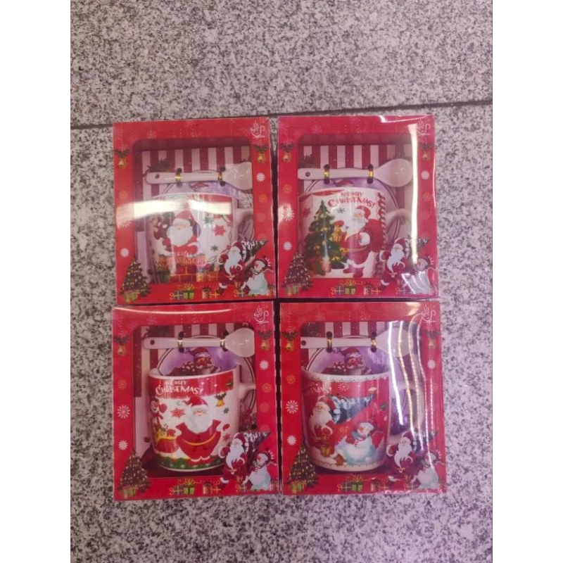 READY STOCK SET MUG ISI 1PCS SUDAH TERMASUK SENDOK DAN BOX KADO HAMPERS NATAL MOTIF RANDOM