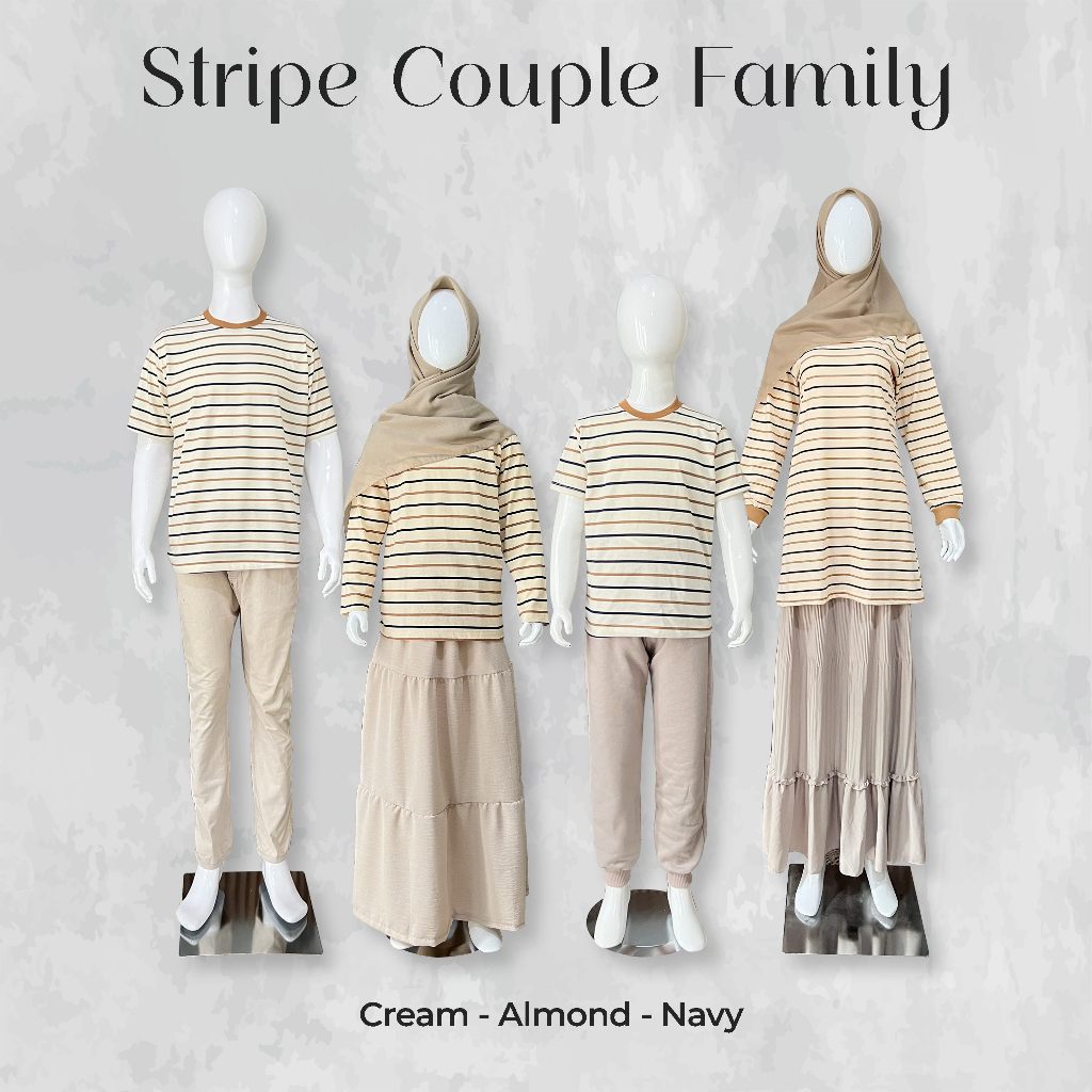 Atasan Couple Family Anak Dewasa Laki Laki Perempuan Strip 3 Warna Cream