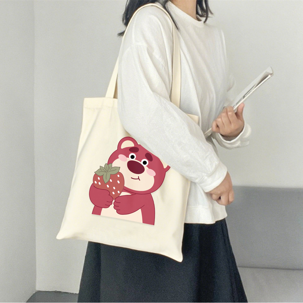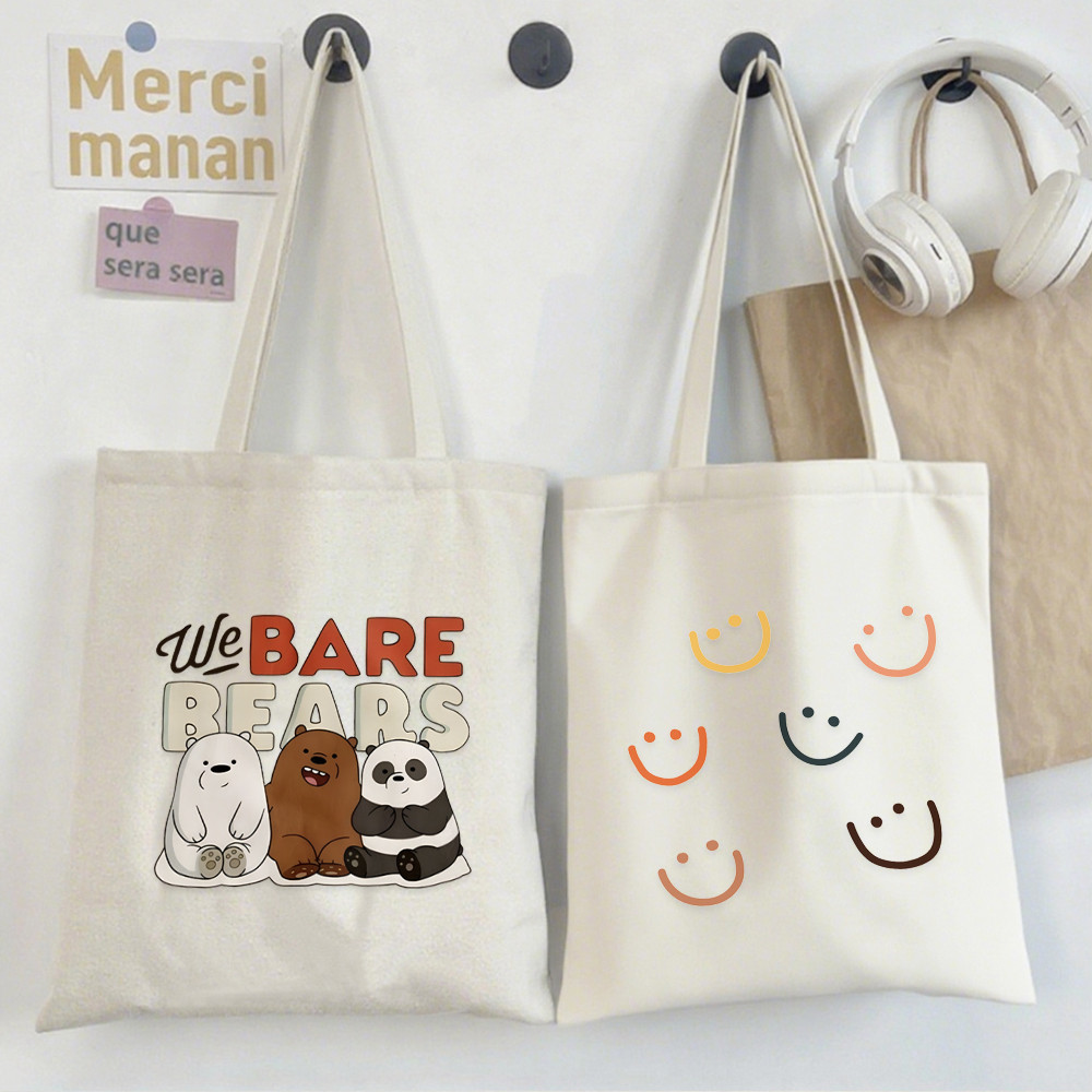 Singing Bear Canvas Tote Bag with Zipper for Women Large Capacity Reusable Shopping Travel Bag