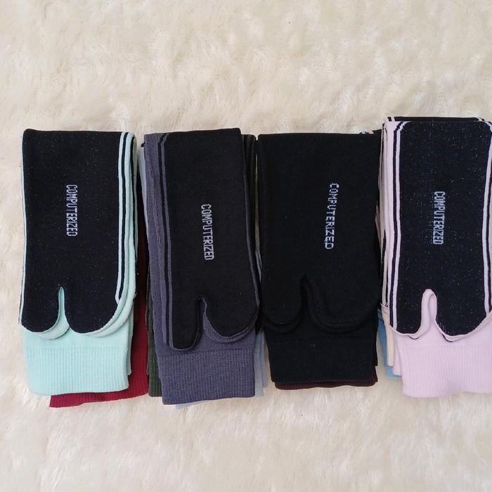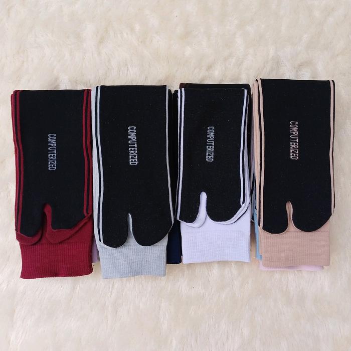 12 PASANG / 1 LUSIN KAOS KAKI JEMPOL NILON POLOS TELAPAK HITAM WANITA MUSLIMAH DEWASA PANJANG - KREM SEMUA, 6 PASANG
