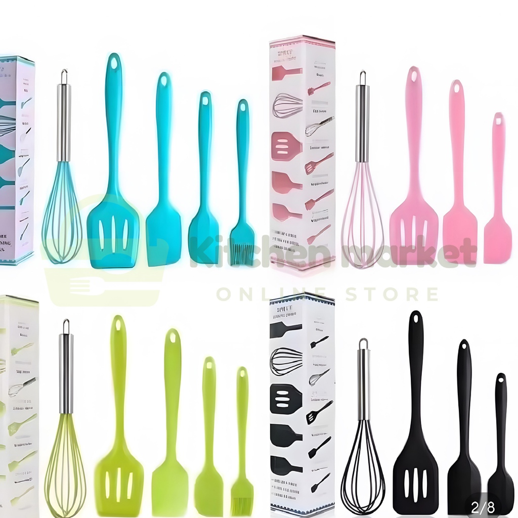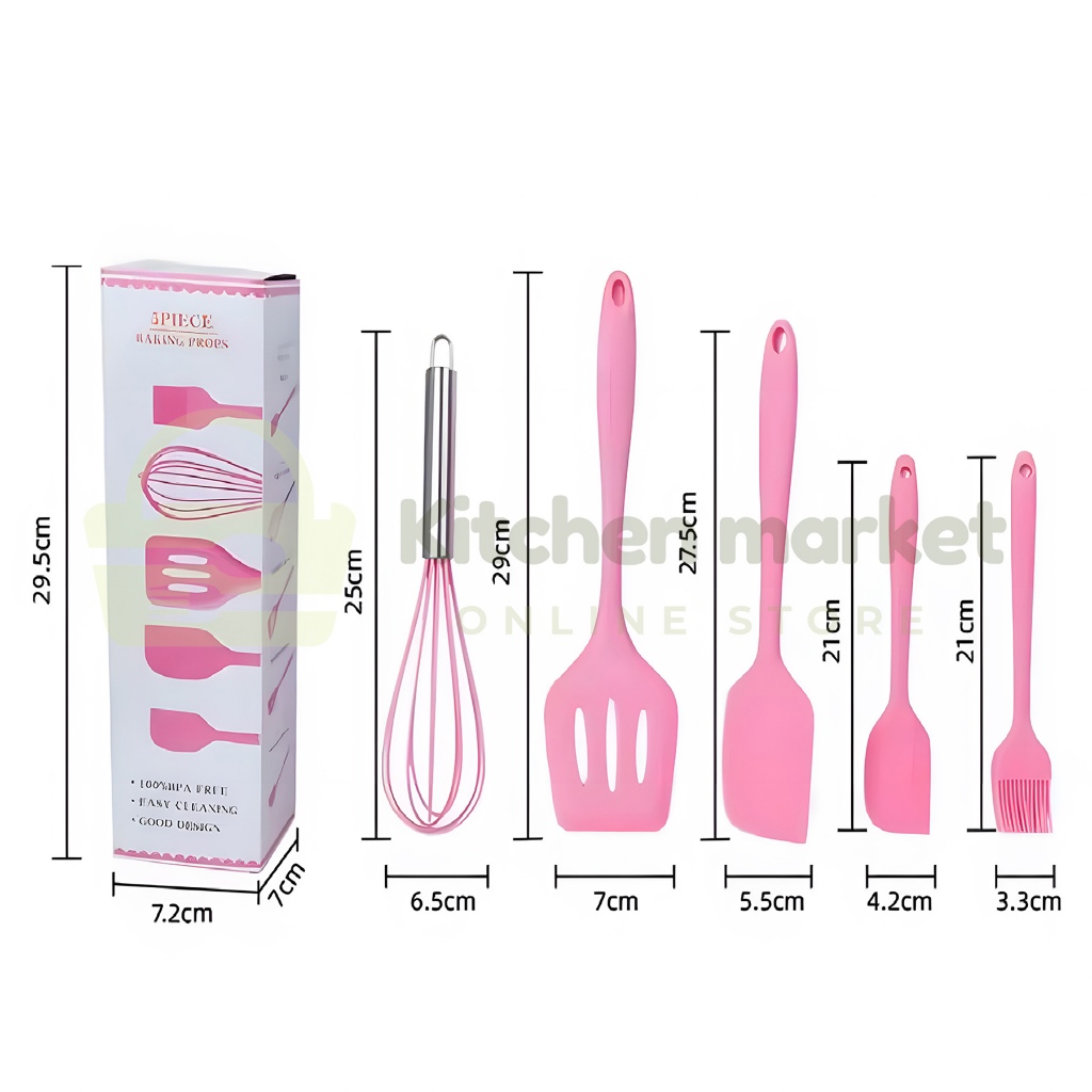 SET SPATULA (KM)Spatula Set Alat Masak 5 in 1 Sutil Scrap Kocokan Silicone/Silikon - pink