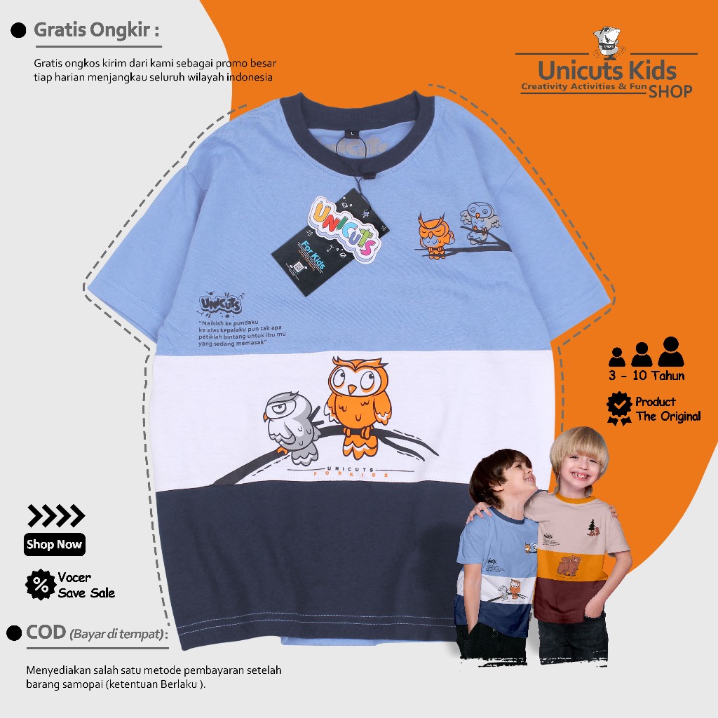 KAOS ANAK LAKI LAKI DAN PEREMPUAN OWL / BAJU COUPLE ANAK 3-10 TAHUN FAHION KENINIAN LUCU ADEM CASUAL
