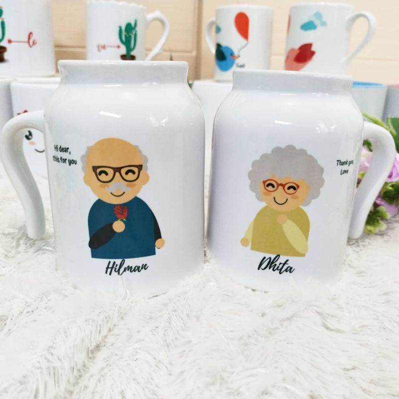 Hadiah Unik Mug Couple Karakter Orang Tua Custom Nama