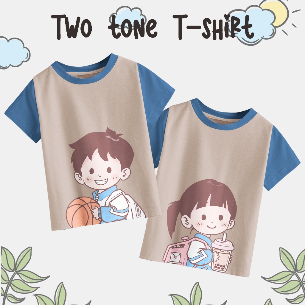 Kaos Couple Twotone Anak Laki Laki Perempuan Warna Merino Deepblue