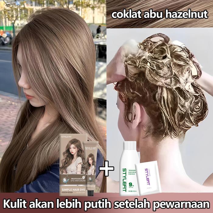 TIDAK PERLU MEMUTIHKAN RAMBUT STYLE FIT CAT RAMBUT 200ML WARNA TAHAN LAMA. SETELAH DIWARNAI, KULIT AKAN MENJADI LEBIH PUTIH,PEWARNA RAMBUT HAIR COLOUR HAIR DYE ABU-ABU HITAM - COKLAT ABU HAZELNUT