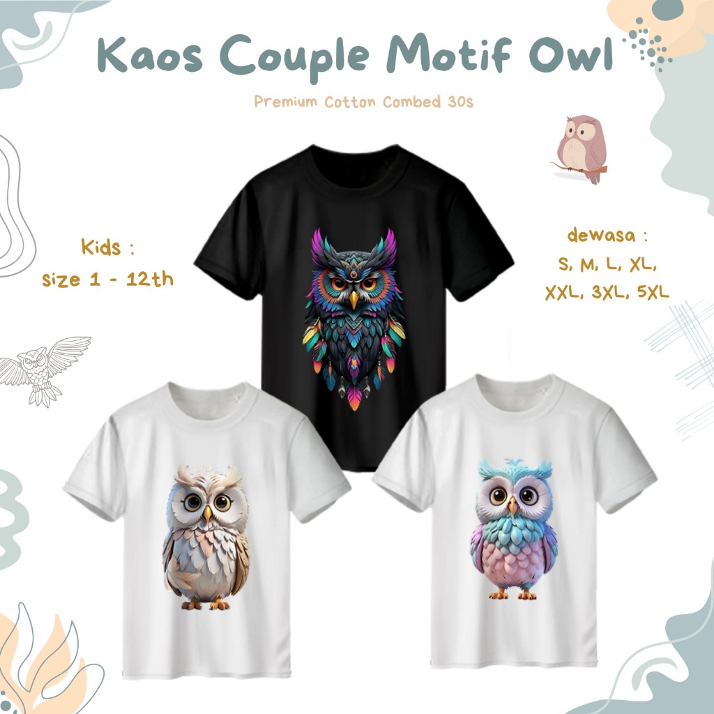 Kaos Couple Cowok Cewek Keluarga Anak Motif OWL Burung Hantu Lucu Katun Combed30s