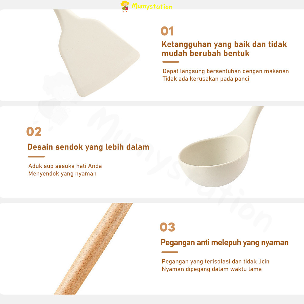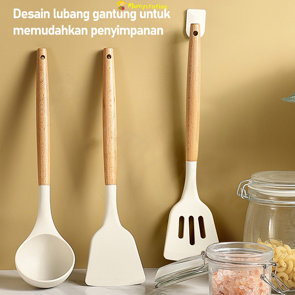 SET SPATULA Mumystation 3pc Spatula Silikon Set Peralatan Masak Pegangan Kayu Anti Gores
