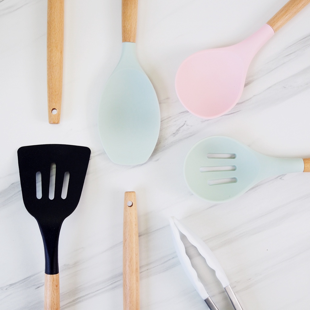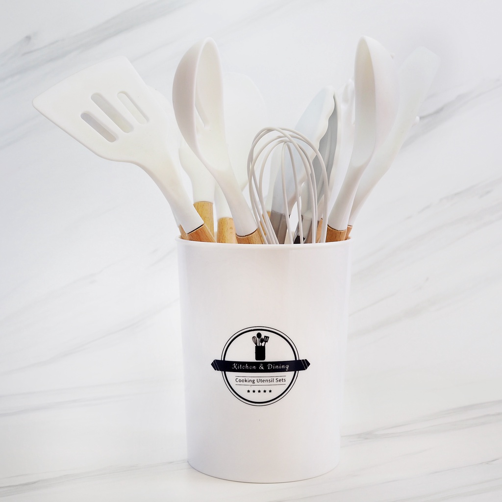 SET SPATULA HighQuality Spatula Set Silikon Tahan Panas 12 Set Spatula Silicone Warna Putih