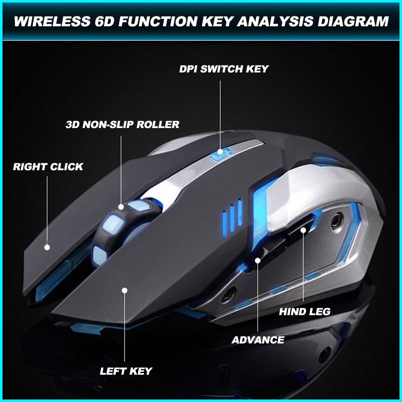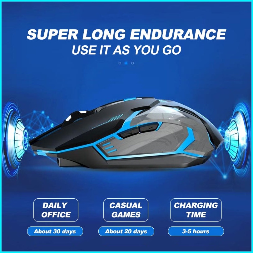 Mouse Gaming Wireless 2.4ghz 1600 Dpi Three-speed Adjustment Silent Click Rechargeable Support Laptop Pc Rgb Led