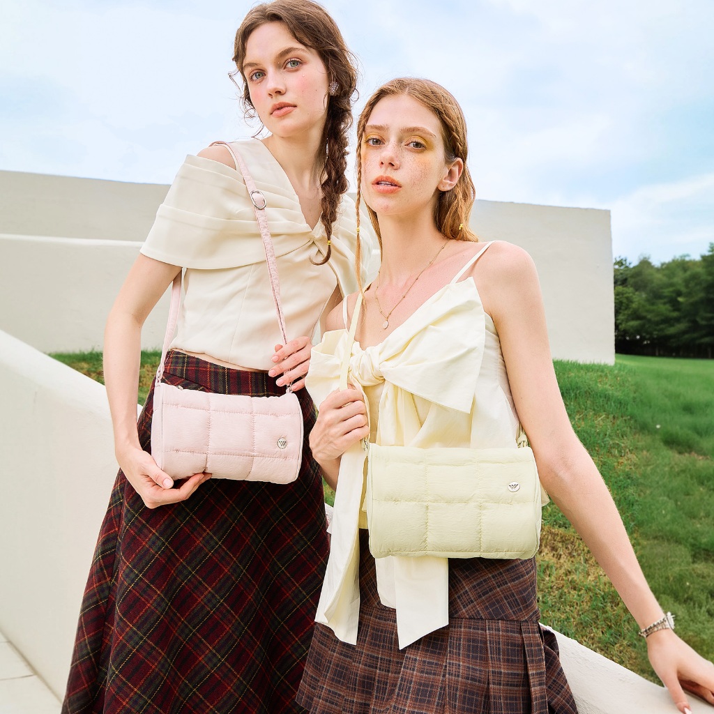 Westbronco [PUFFER CYLINDER BAG] Tas selempang tahan air, Tali yang bisa disesuaikan untuk bahu, Dua kantong sisi
