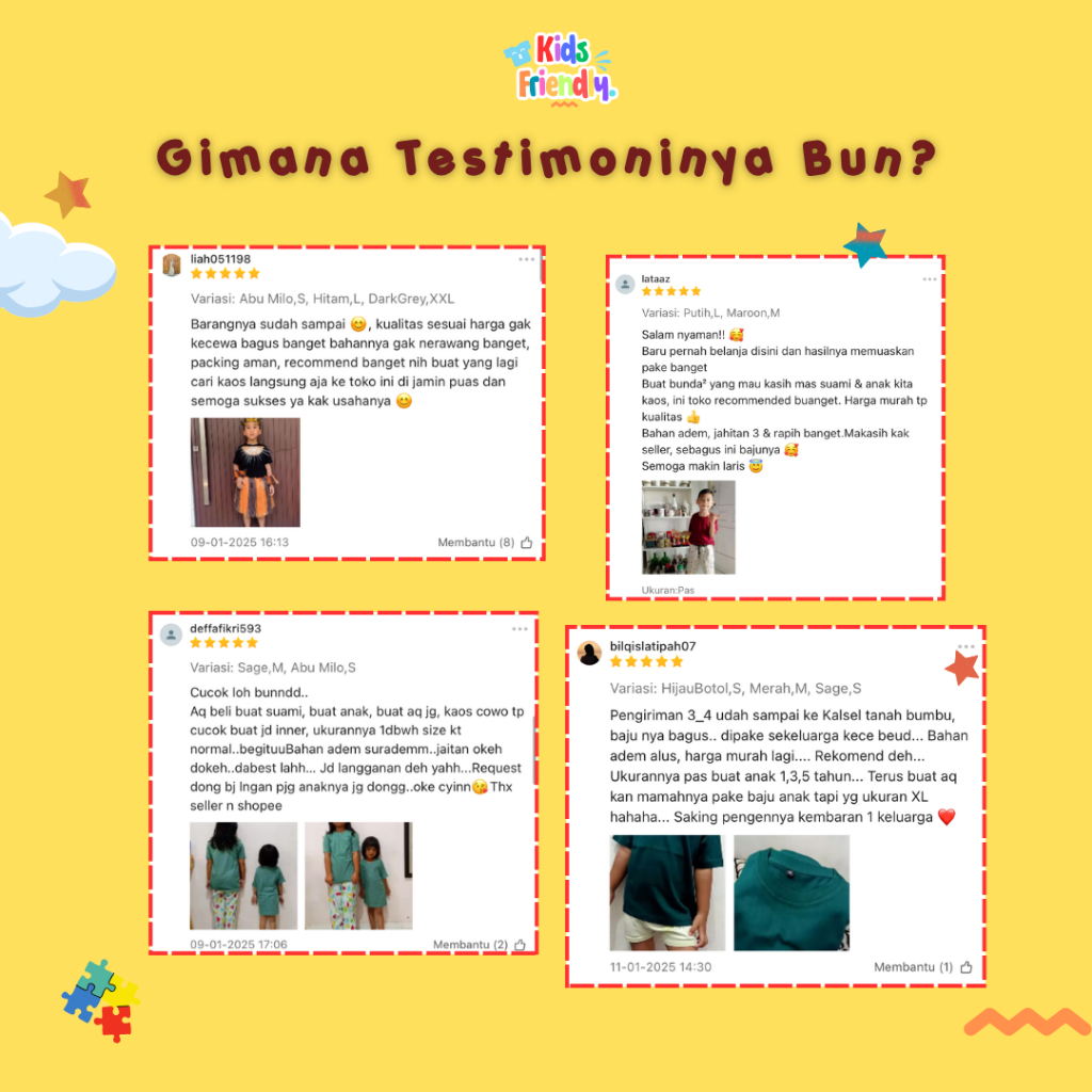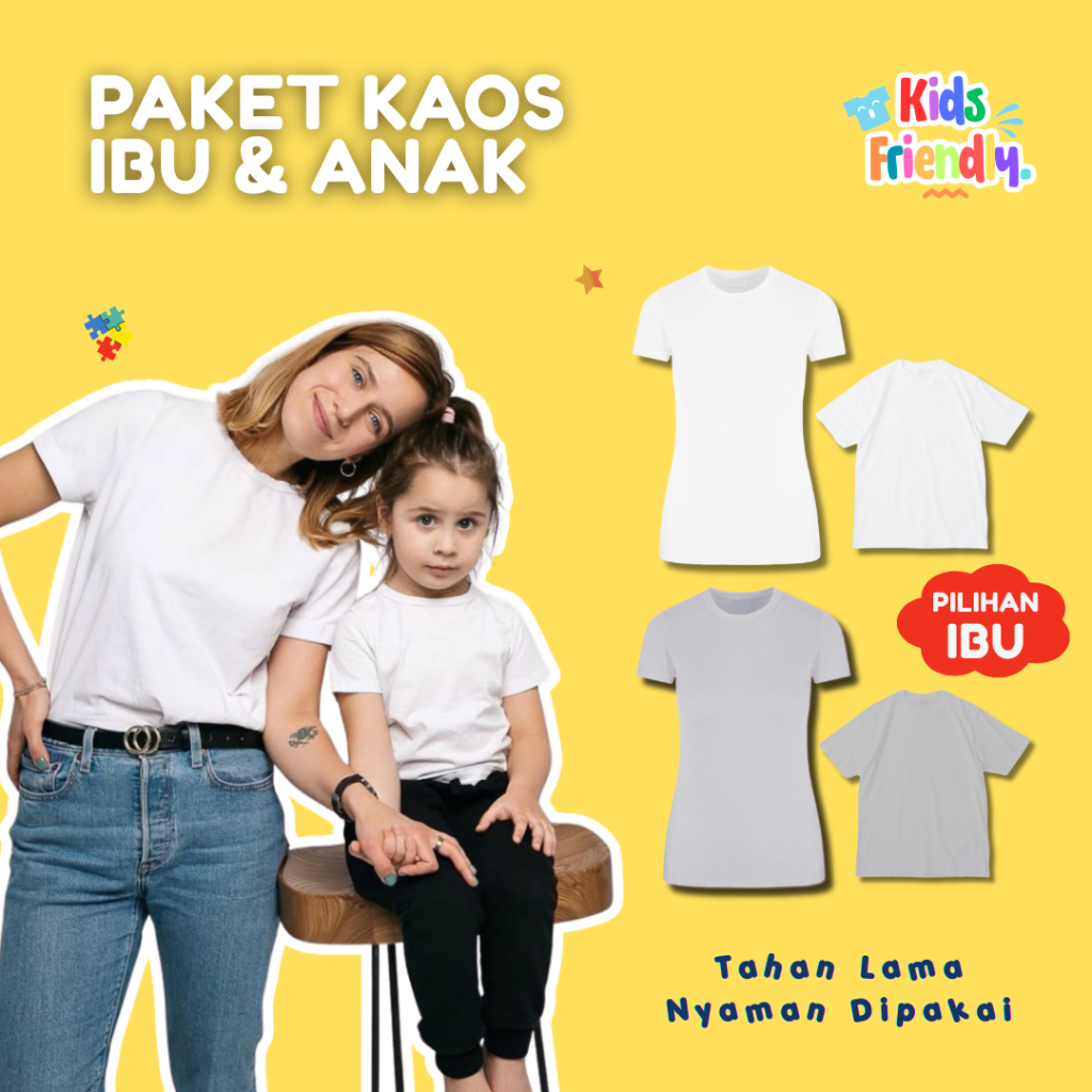 Kaos Couple Ibu Dan Anak Laki Laki Perempuan Baju Kaos Polos Combed 30S Premium