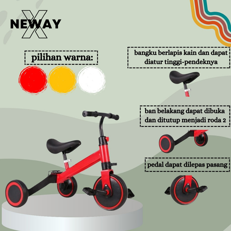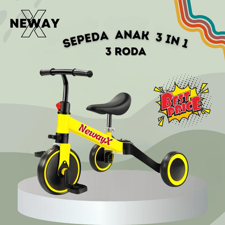 NewayX Sepeda Roda Anak 3 in 1 Balance Bike Pedal Roda 2 Tiga Mainan Keseimbangan Multifungsi Push