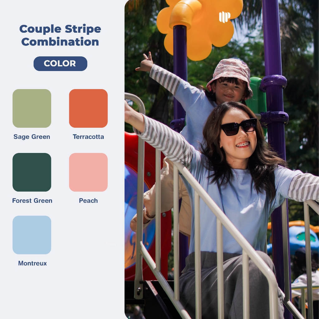 Madia Kaos Couple Kombinasi Salur Dewasa & Anak - Sarimbit - Lengan Panjang Cotton Combed 24s - FB01