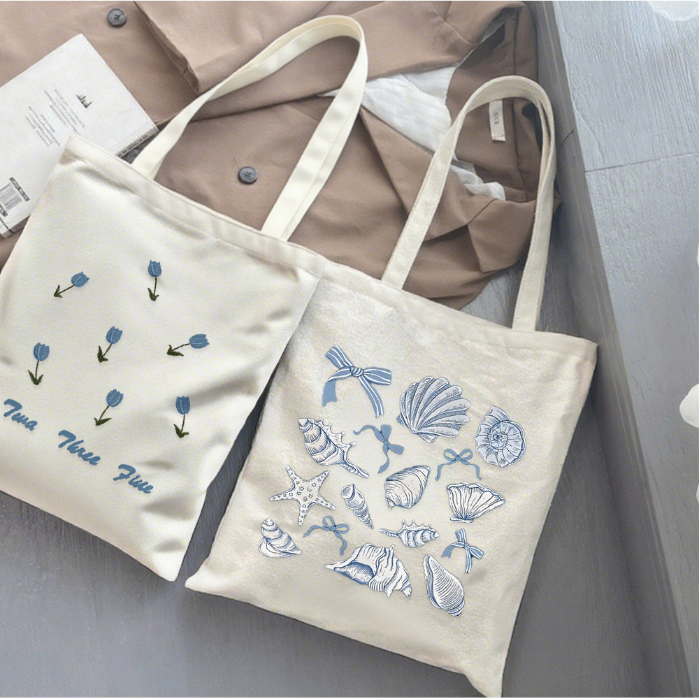 Blue Flame Alphabet Canvas Tote Bag with Zipper for Women Large Capacity Reusable Shopping Travel Bag