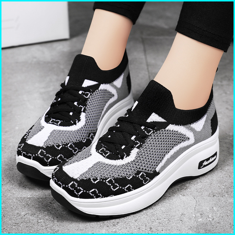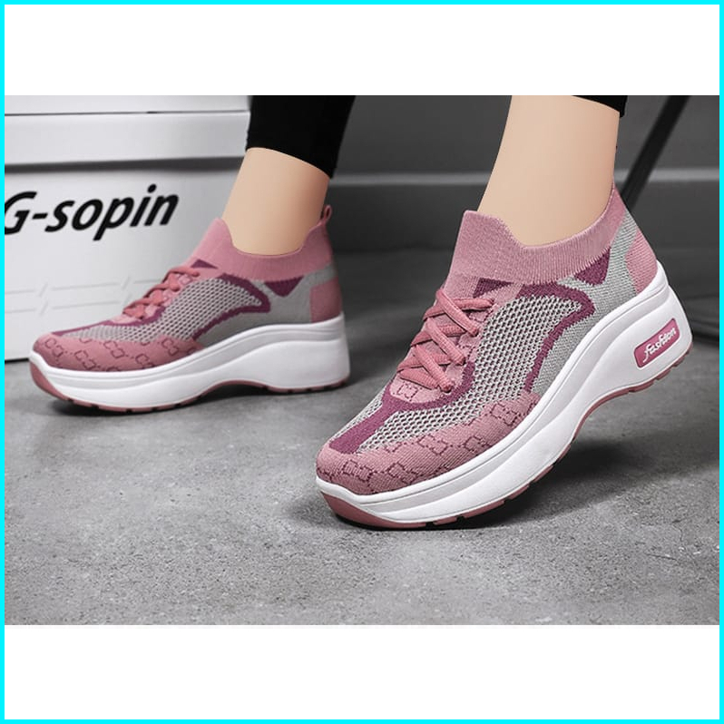 Ssis Ch014 Sepatu Wanita Slip-on Flyknit Berkualitas Highsole Daily Bagus Comfy Praktis