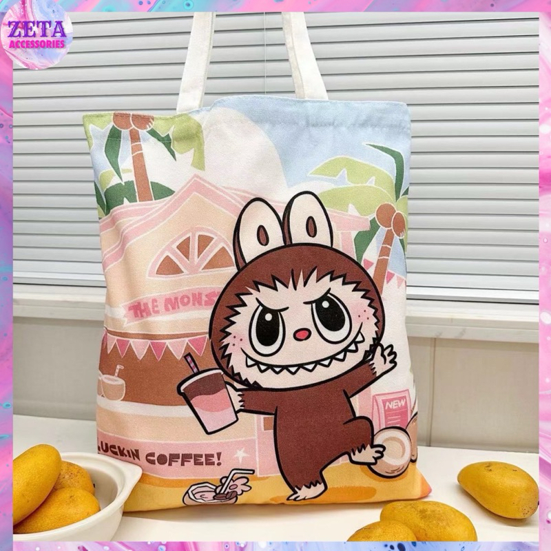 ZETA T002 CANVAS TOTE BAG LUCU tas kanvas belanja ukuran 35x40 labubu loopy kuromi