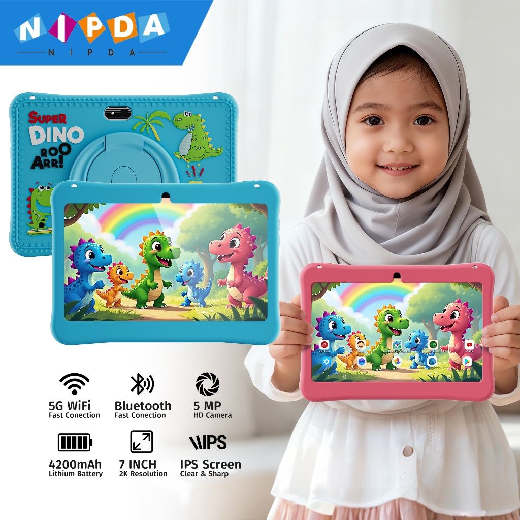 NIPDA Study Tablet Anak IPS Screen Anti Radiasi Edukasi 7 Inch Tablet Anak 2 Camera 6+128GB Belajar HD Wifi Belajar APP