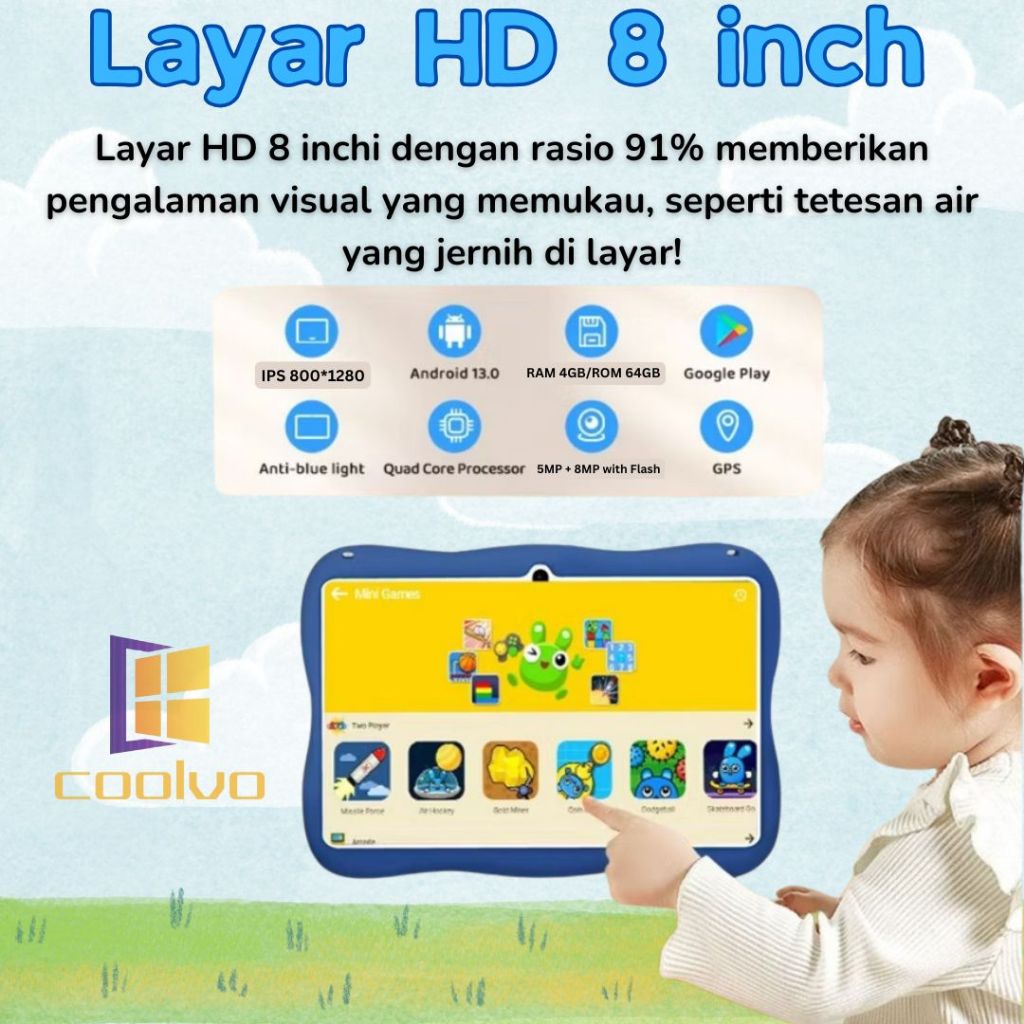 Aipet AntiRadiasi Tablet Anak Android 7 8 Inci 4/64GB Belajar Edukasi Anti Radiasi