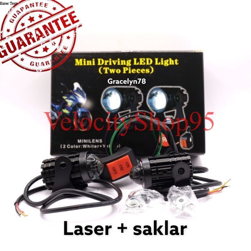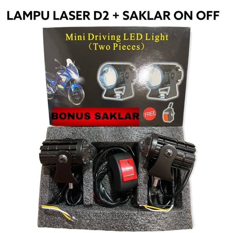 Lampu Led D2 Laser + Saklar DC Lampu Depan Led Lampu Tembak Motor Mobil 2 Warna Putih Kuning Universal Vario Mio Aerox Beat Nmax Pcx Scoopy Supra DLl