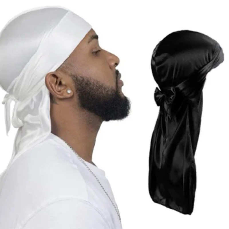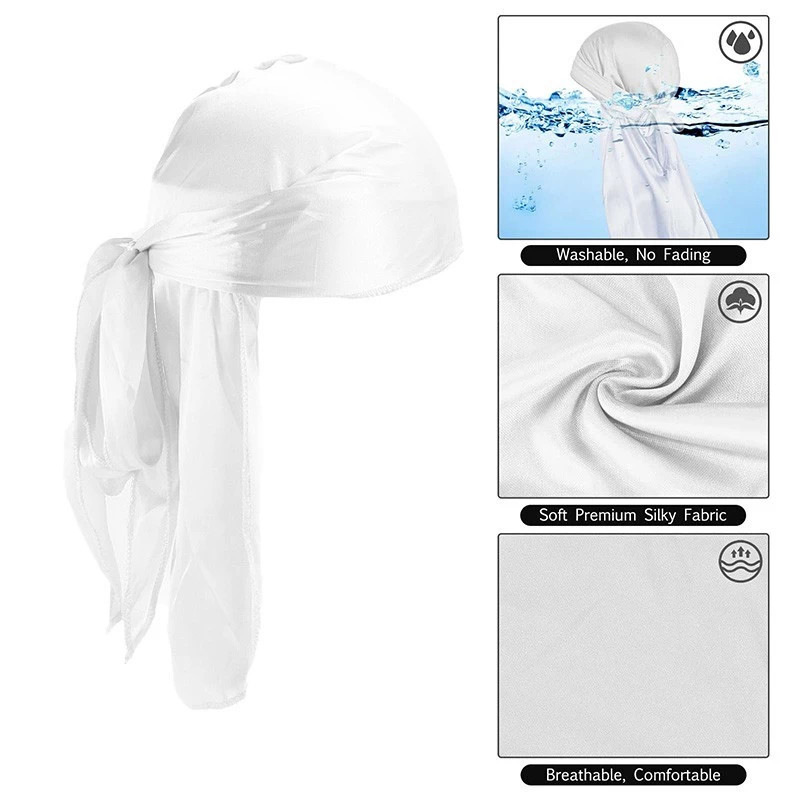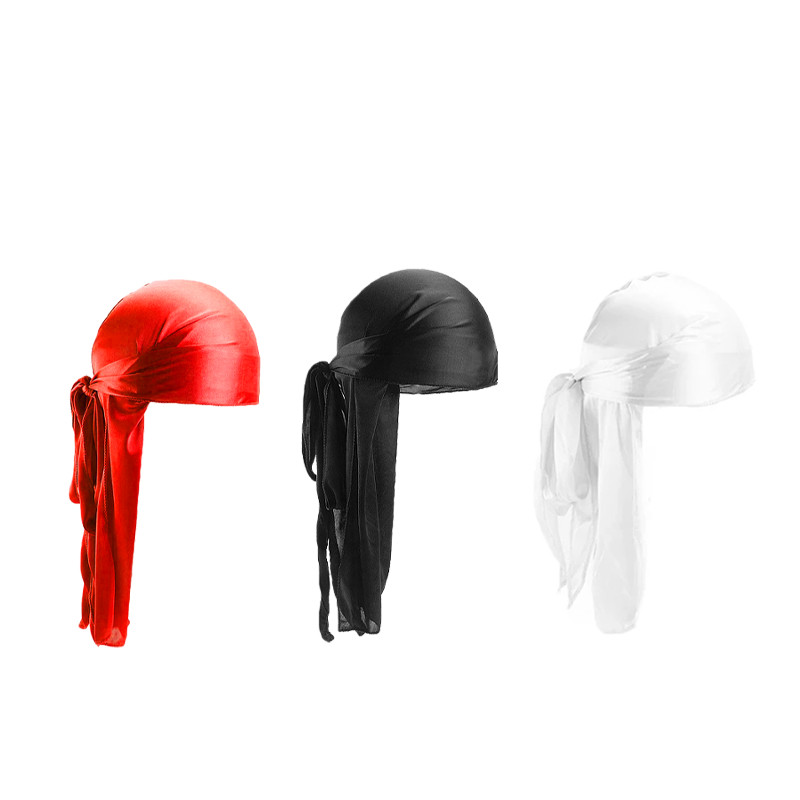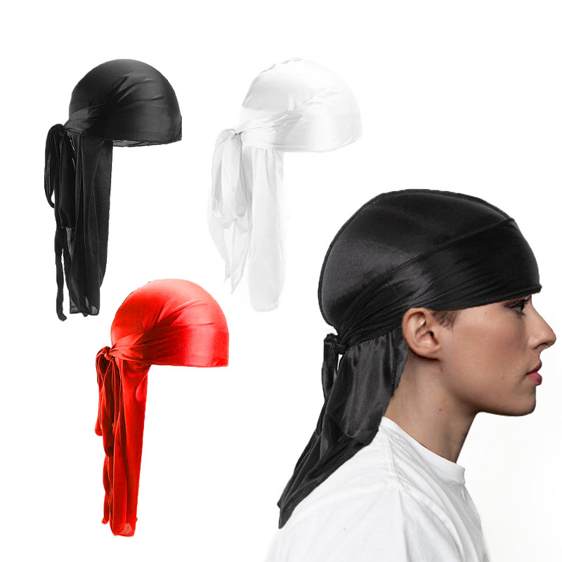 Silk Durag Ikat Kepala - Hip Hop Aksesoris Rambut, Bandana Hitam Putih, Chemo Cap & Pirate Hat Gaya