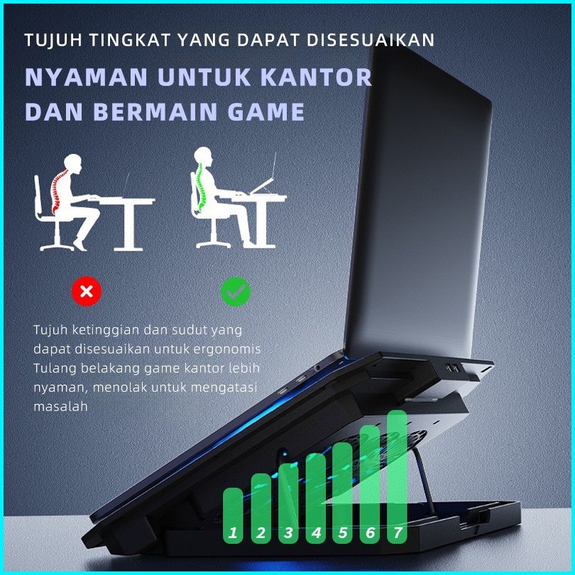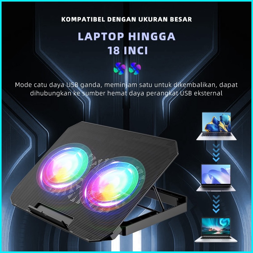 Olyps Cooling Pad Laptop Rgb Gaming Kipas Pendingin Laptop N33 With Phone Stand - 7 Level Adjustable