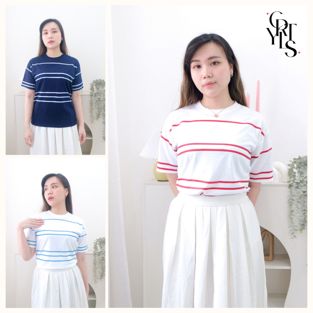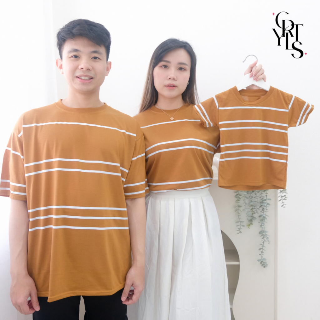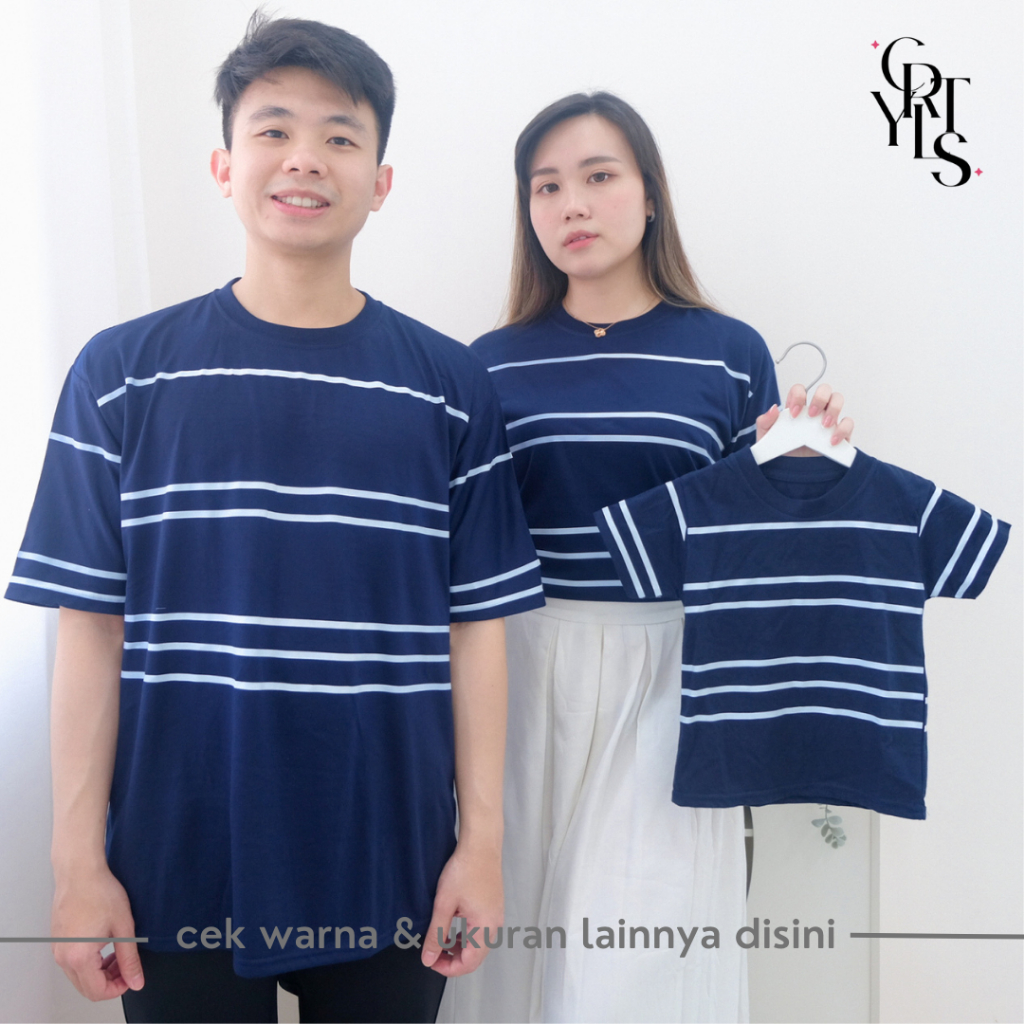 Carotyles Baju Atasan Kaos Couple Keluarga Family Wanita Anak Perempuan Laki Laki Pasangan Oversize Jumbo Lengan Pendek Panjang Korean Style Terbaru Garis 123 2