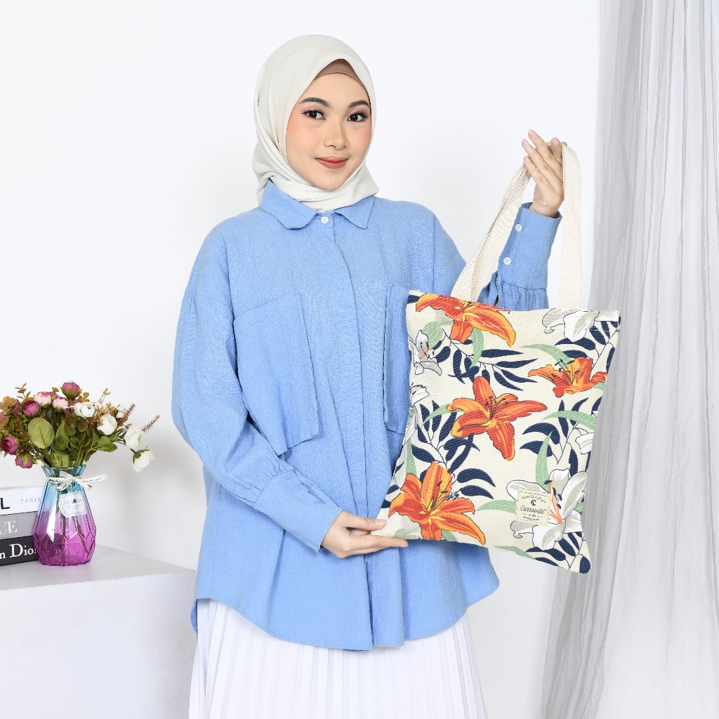 TAS TOTE BAG WANITA RESLETING TAS TOTE KANVAS tebal untuk BELANJA KULIAH BISA CUSTOM SABLON TT 022