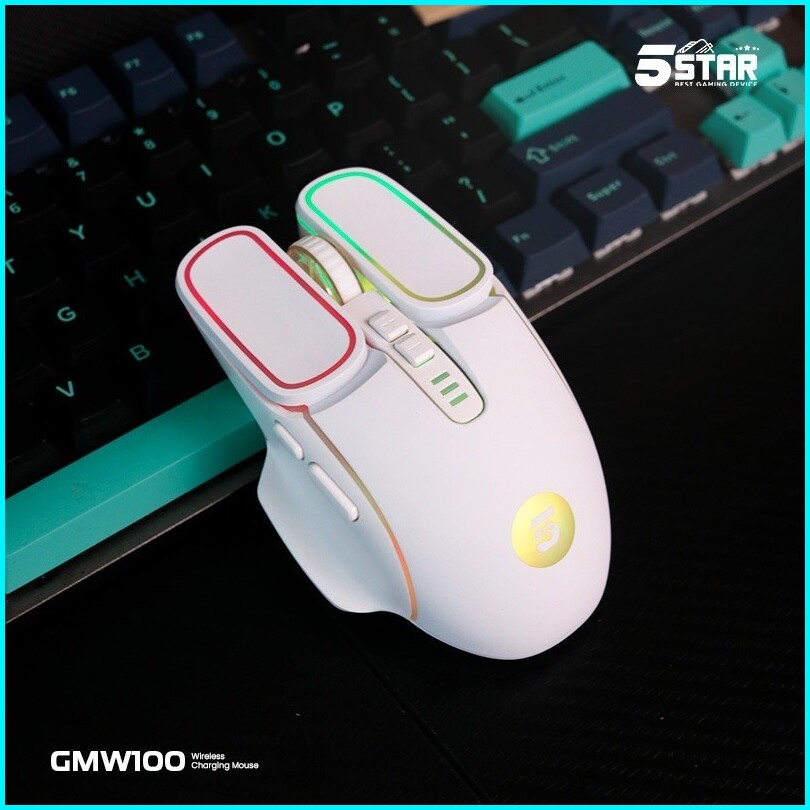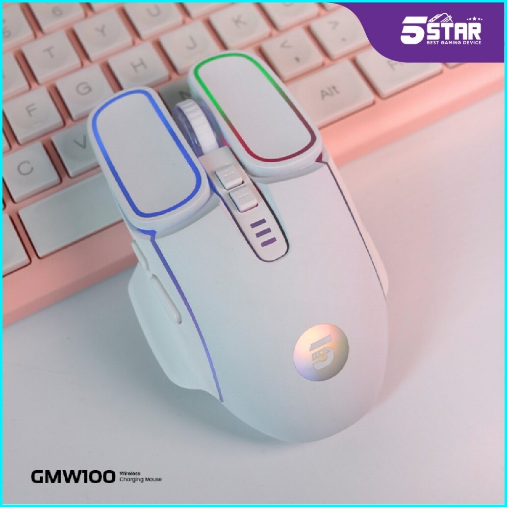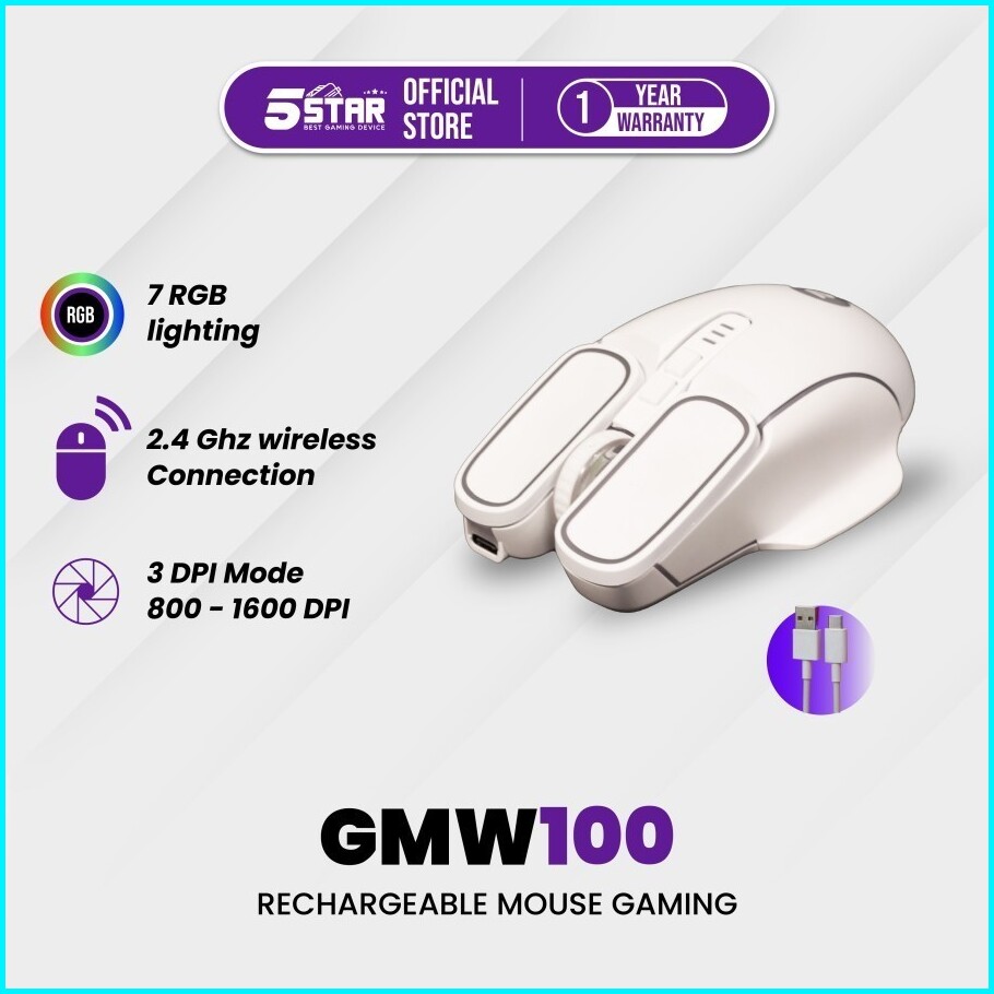 5star Mouse Wireless Gaming Rechargeable Baterai Type-c Fast Charging 1600dpi Rgb Light Gmw100 White