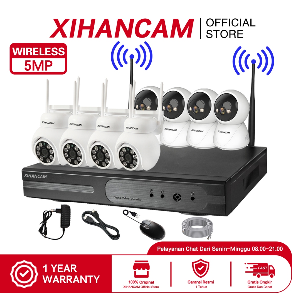 XIHANCAM Paket CCTV Wifi 10 Channel 10 Kamera Nirkabel NVR Wireless 5MP Kit Kamera CCTV Wireless Paket NVR CCTV 10CH Komplit Siap Pasang